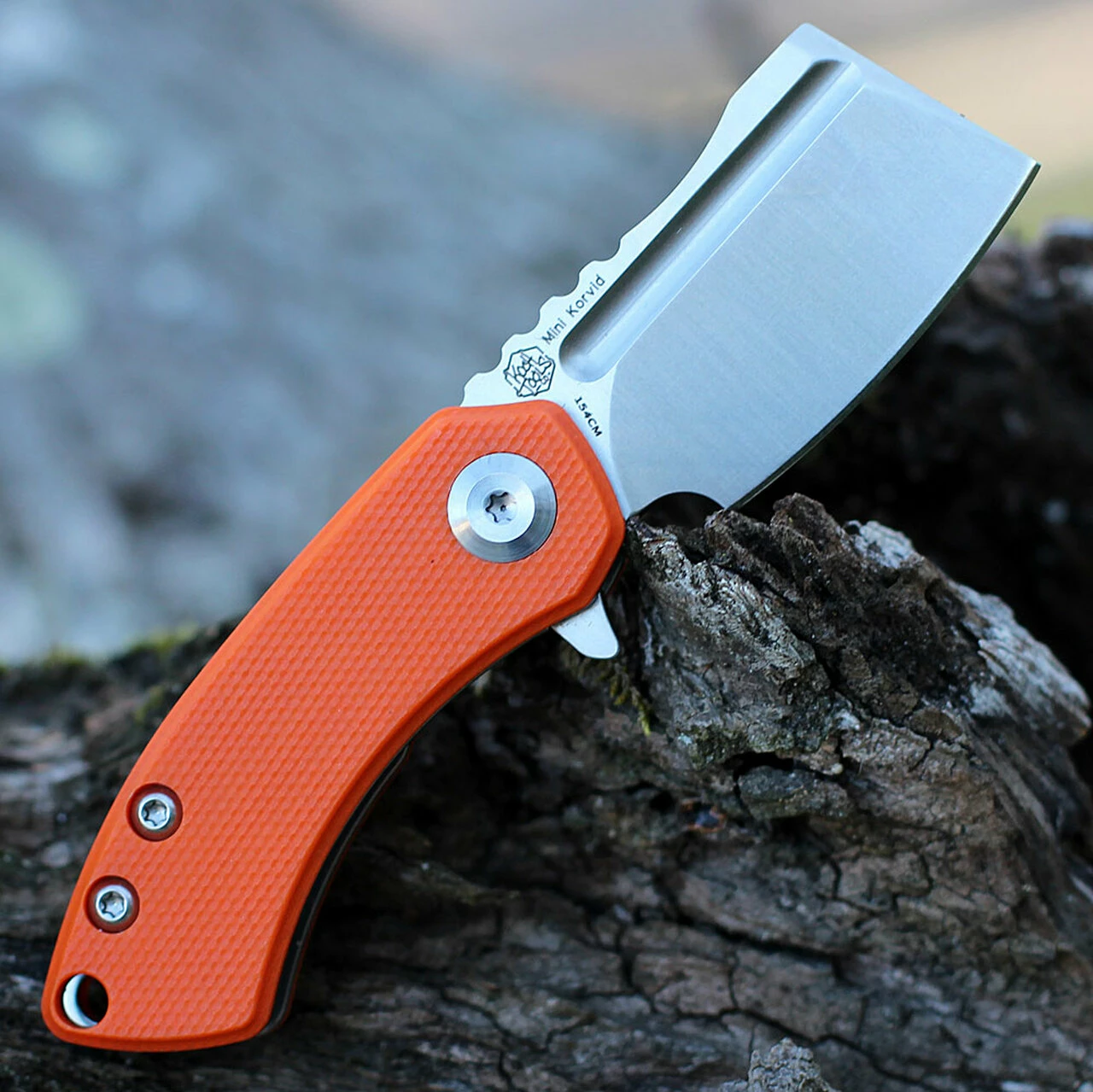Kansept Mini Korvid Folder (T3030A6) – 1.45″ 154CM Satin Cleaver Blade, Orange G-10 Handle
