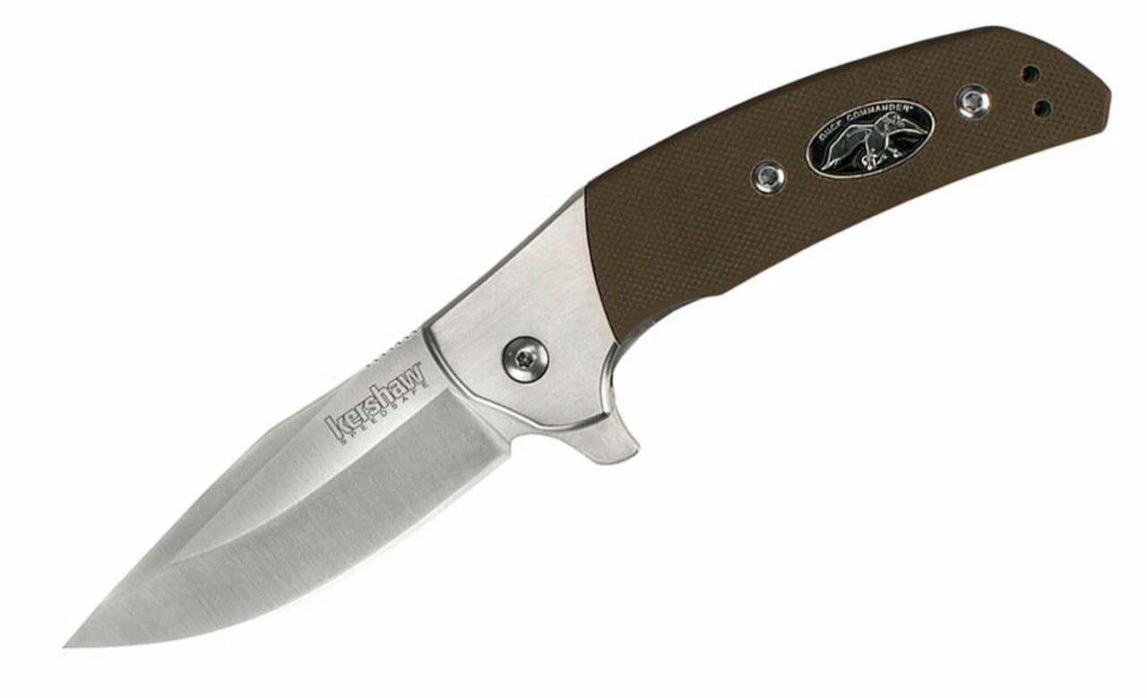 Kershaw 7402DCX Duck Commander Rayne, 3″ 8Cr13MoV SS, Plain Blade, 420HC/G-10 Handle