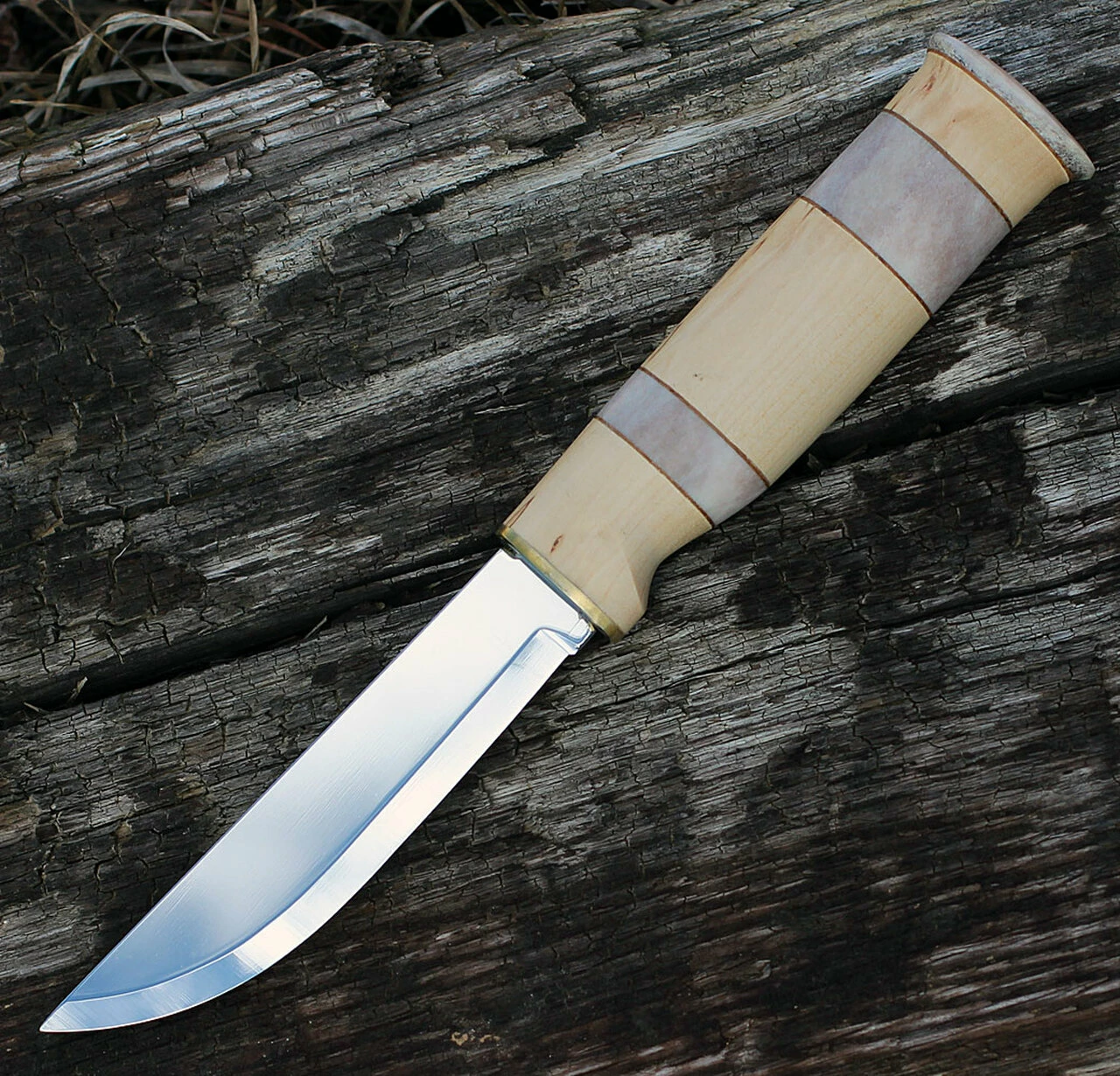 Marttiini 2230010 Lapp Knife, 4.5″ Stainless Blade, Curly Birch & Reindeer Horn Handle