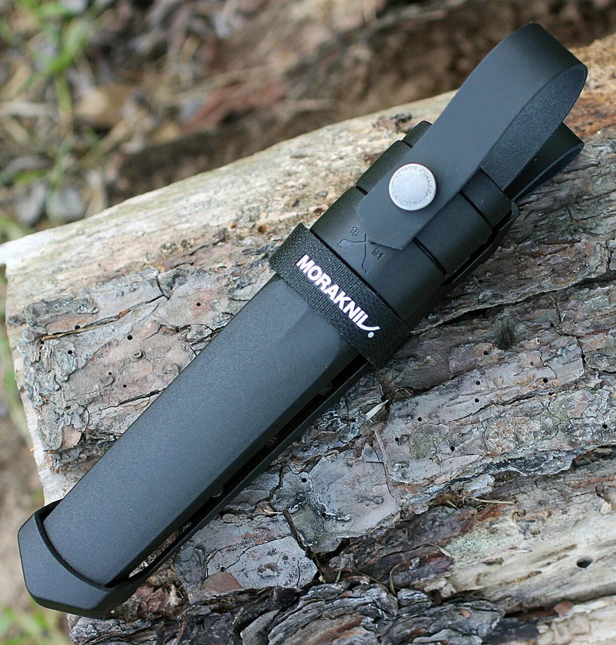 Choose between sheath in exclusive black leather or our versatile Multi-Mount solution.Morakniv Garberg is a powerful full-tang knife designed to perform the toughest tasks it encounters. Manufactured at our factory in Mora, Sweden, it’s the most robust knife we’ve ever made. The 3.2mm thick blade is made from high-grade Swedish stainless steel, treated to make it even stronger and more durable. The blade has a Scandi-grind profile that makes it easy to keep sharp and a ground spine compatible with a fire starter. It has an exclusive leather sheath, a handsome and resistant protective cover. Whatever adventure you’re on you don’t want to be without it, making your Morakniv a part of you.