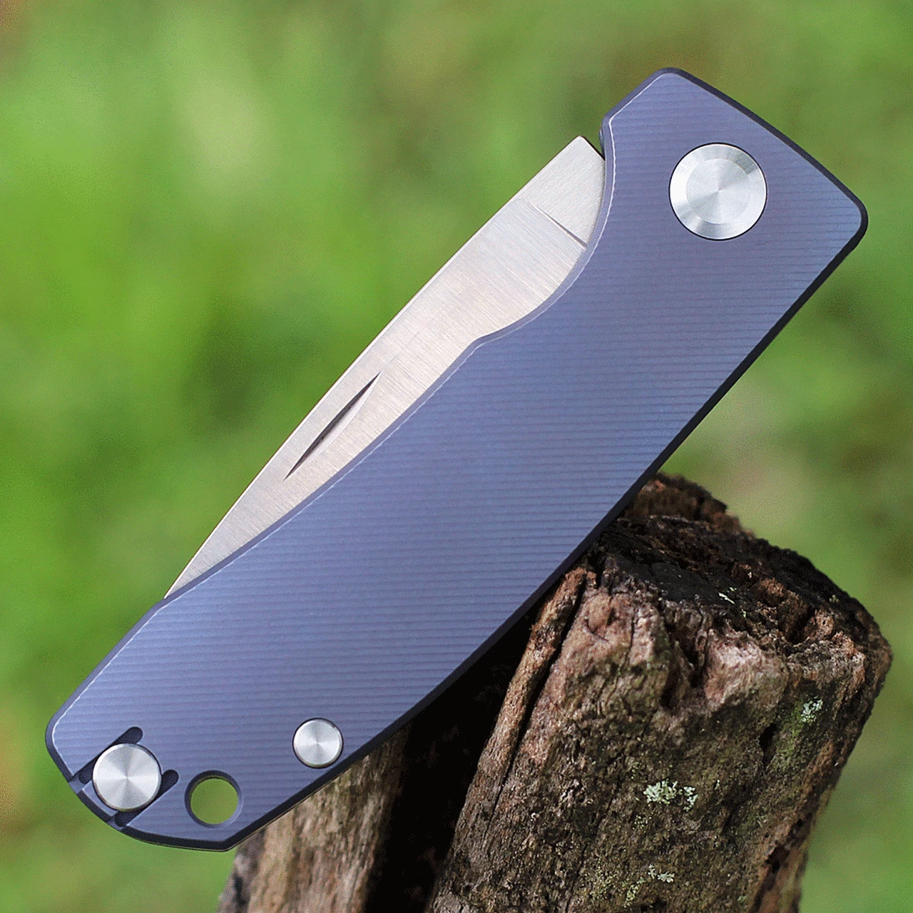 PMP Knives & Maxace Harmony PMP005, 3″ Satin Bohler M390 Drop Point Blade, Blue Titanium Handles