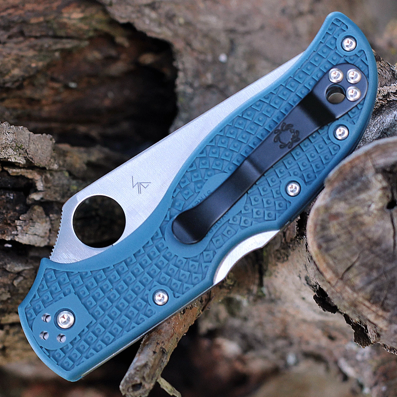 Spyderco Stretch 2 Straight Spine C90FP2K390, 3.43″ Satin K390 Blade, Blue FRN Handle