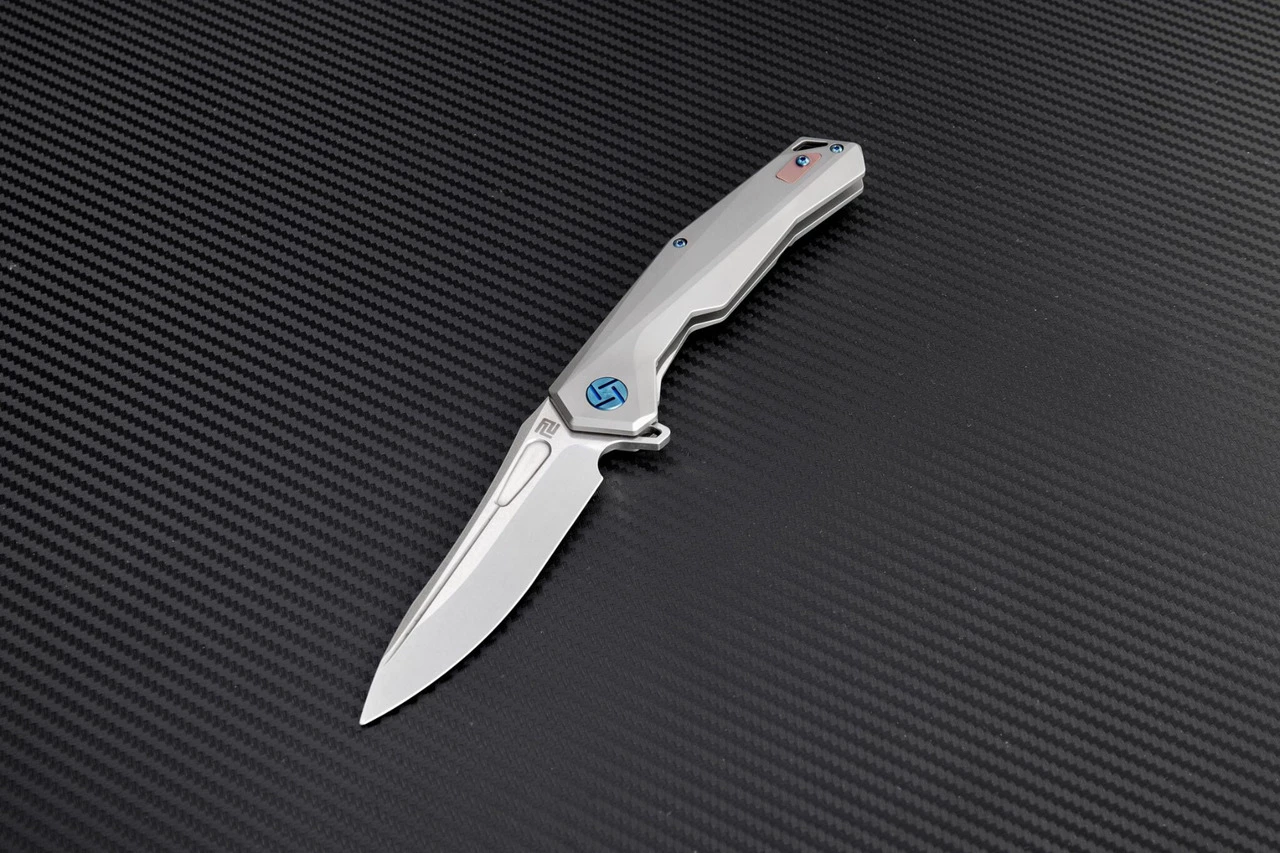 Artisan Zumwalt ATZ1808GGYS, 3.78″ S35VN Plain Blade, Gray Titanium Handle