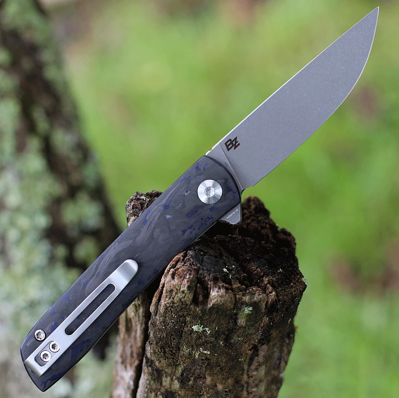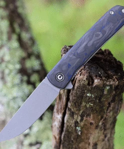 CIVIVI Bo Front Flipper (C20009B-A) – 2.92″ Nitro-V Gray Stonewashed Plain Blade, Blue & Black Carbon Fiber Handles