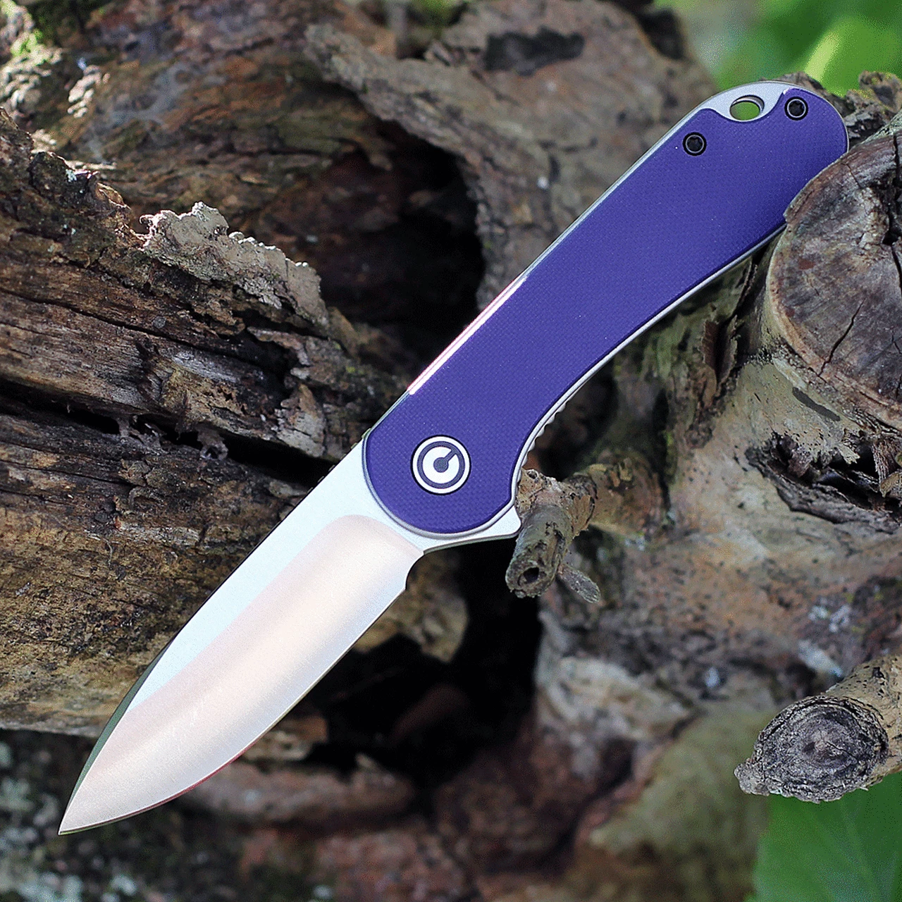 CIVIVI Elementum C907V, 2.96″ D2 Satin Drop Point Blade, Purple G-10 Handles
