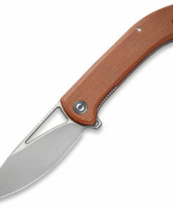 CIVIVI Riffle Flipper Knife C2024A, 3.46″ 14C28N Gray Stonewashed Drop Point Blade, Brown Micarta Handle