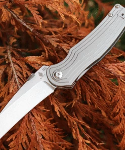 Kizer Cutlery Inversion (Ki4532) – 3.28″ CPM-S35VN Stonewashed Wharncliffe Blade, Gray Sculpted Titanium Handle