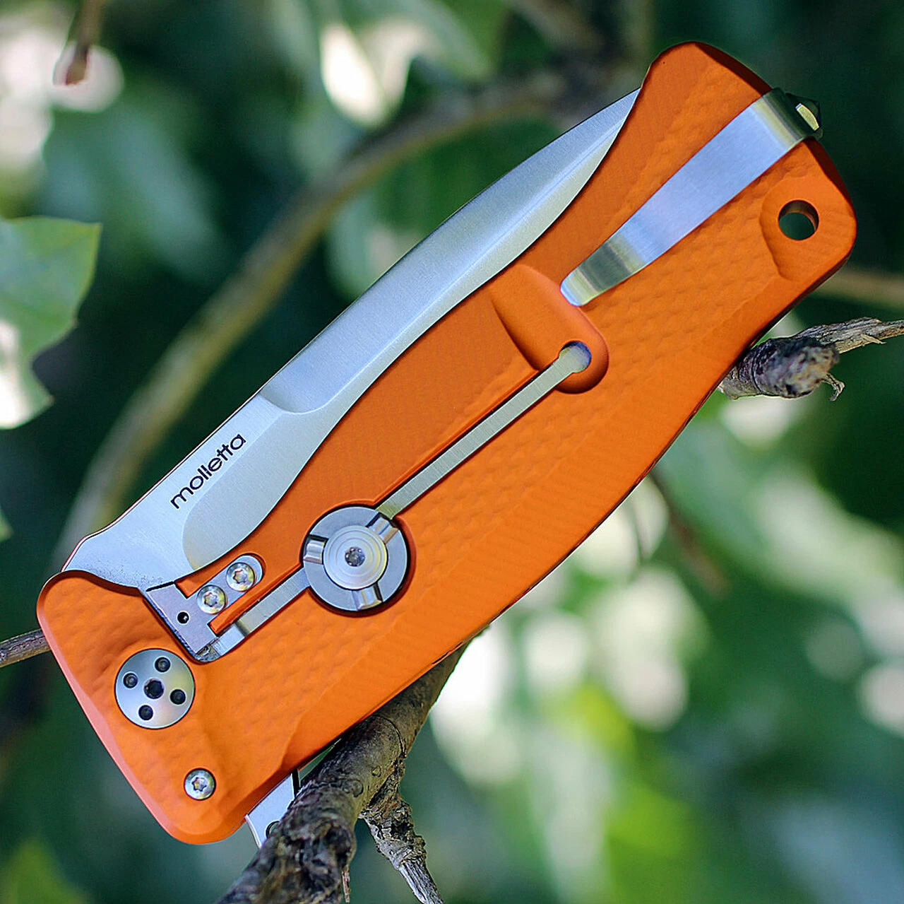 Lion Steel SR-11 Aluminium Orange SR11AOS, 3.70″ Sleipner Plain Blade