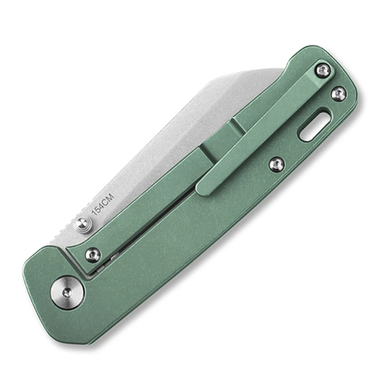 QSP Knife Penguin Folding Knife (QS130-X) – 3.06″ 154CM SW Sheepsfoot Blade, Green Stonewashed Titanum Handle