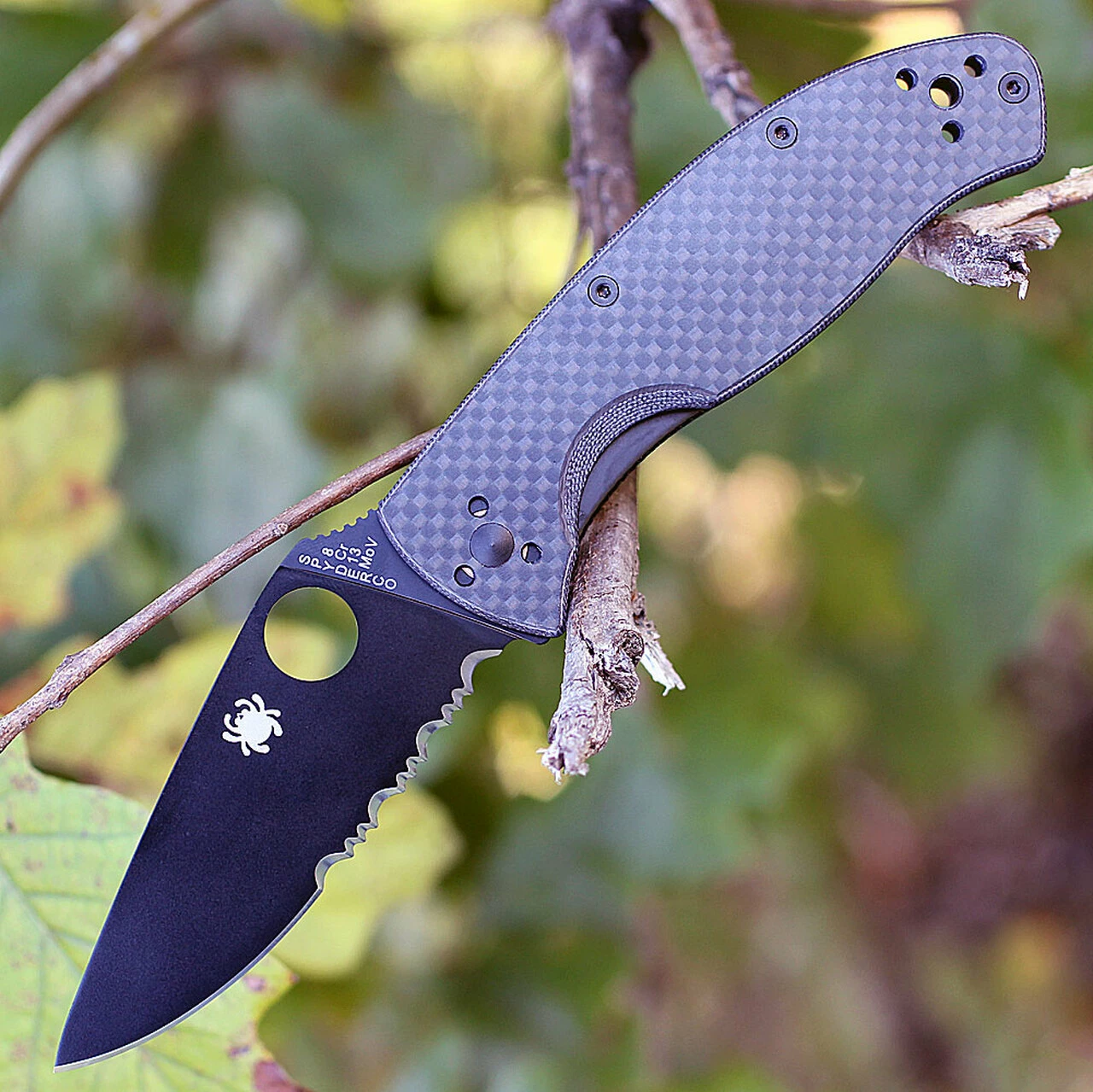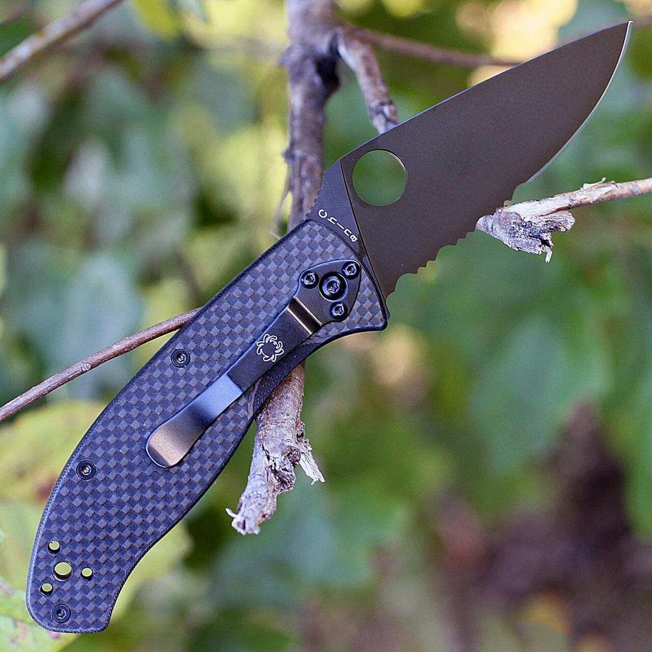 Spyderco C122CFBBKPS Tenacious, 3.39″ 8Cr13MoV Black Combo Blade, Carbon Fiber Handle