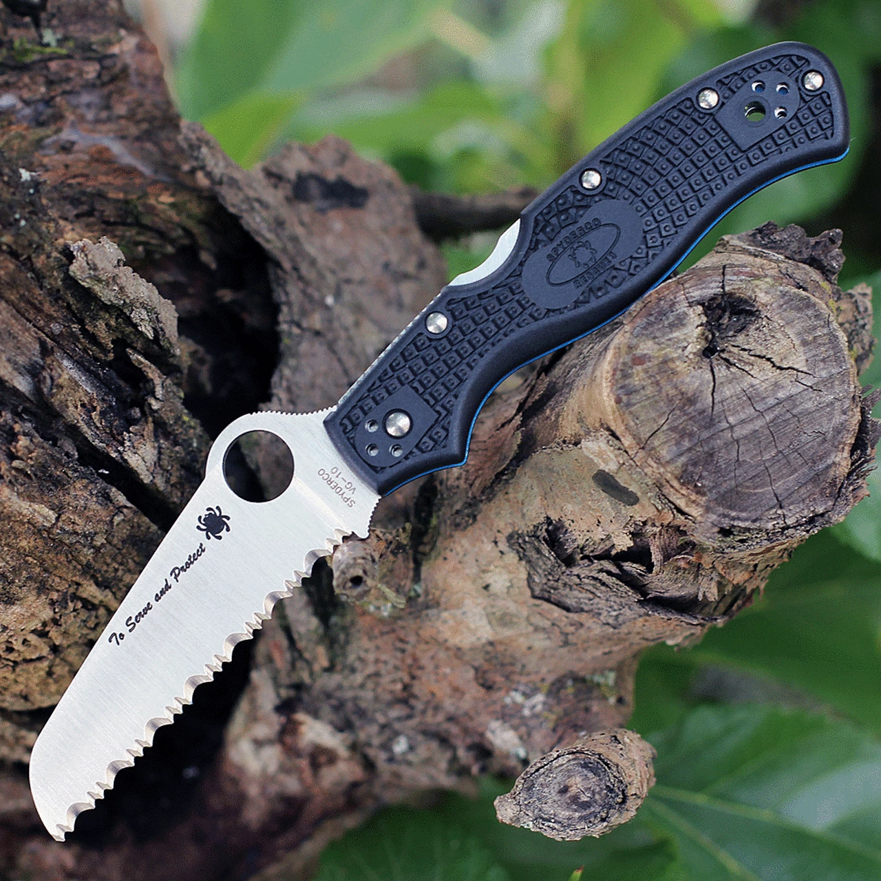 Spyderco Rescue Thin Blue Line 3.57″ Satin Serrated Blade Black FRN Handle – C14FBKBL3