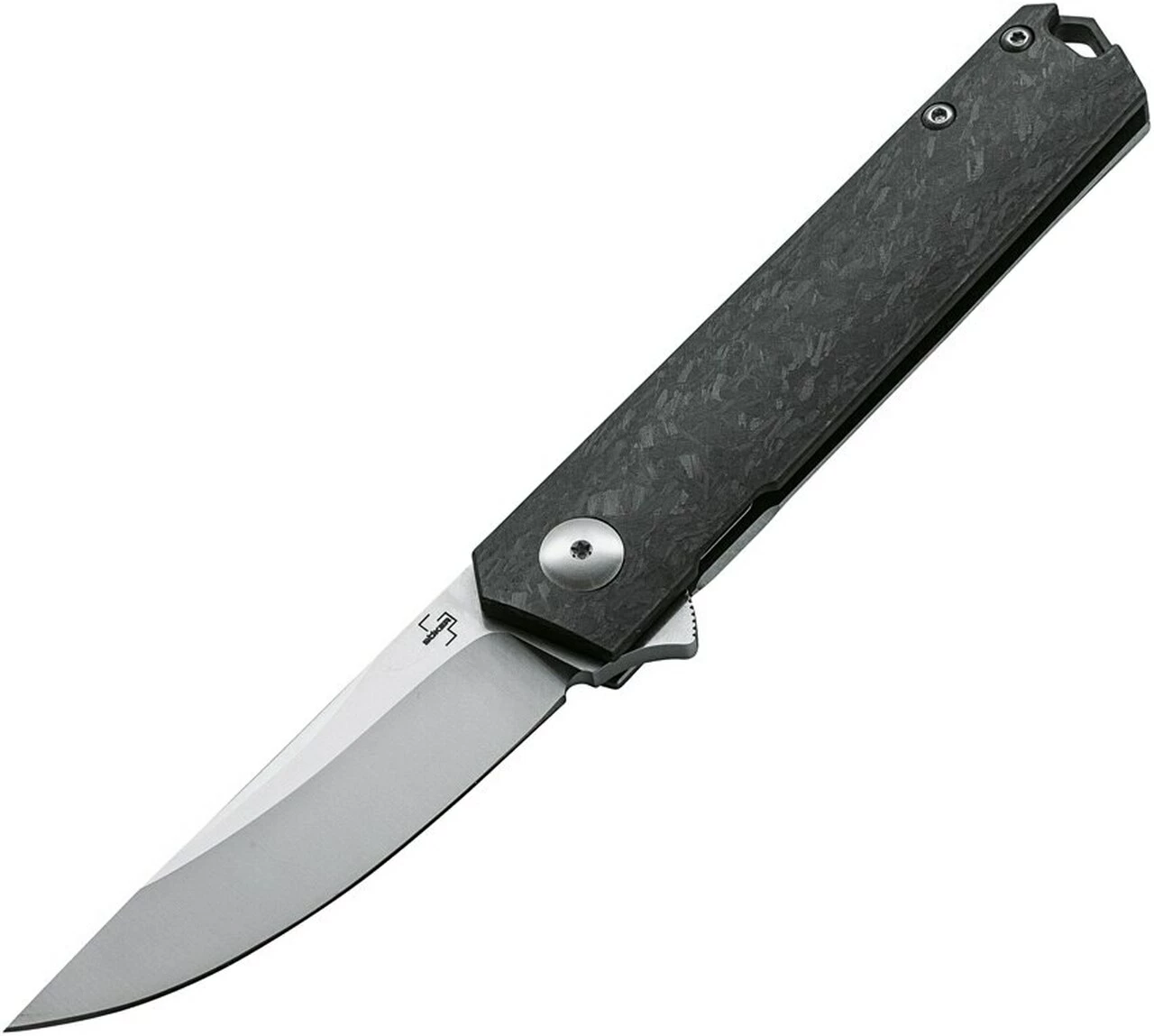 Boker Plus Kwaiken Compact Flipper 01BO231, 3″ D2 Stonewashed Plain Blade, Black Marble Carbon Fiber & Titanium Handle