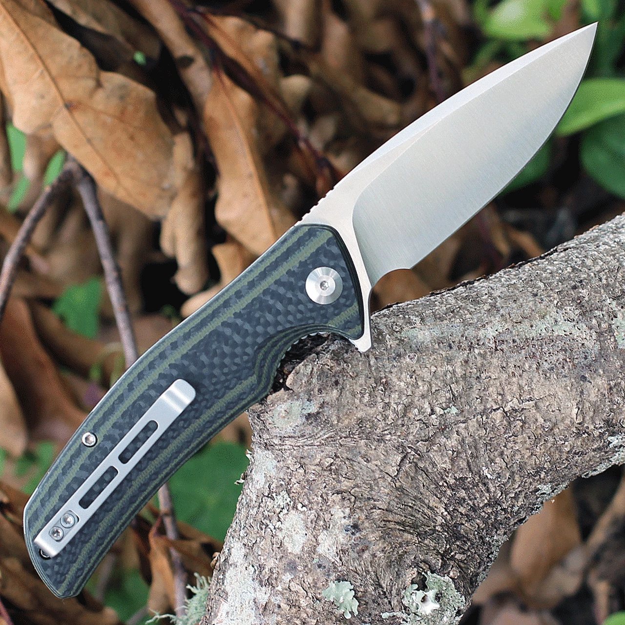 Civivi Incite Linerlock Folder C908A, 3.7” D2 Satin Plain Blade, Green and Black Layered G10 and Carbon Fiber Handle