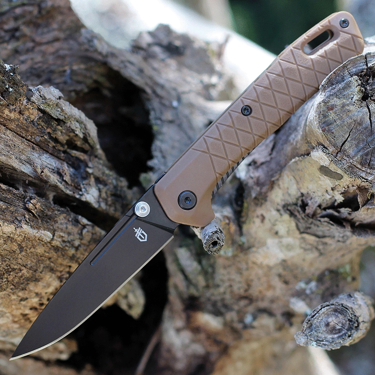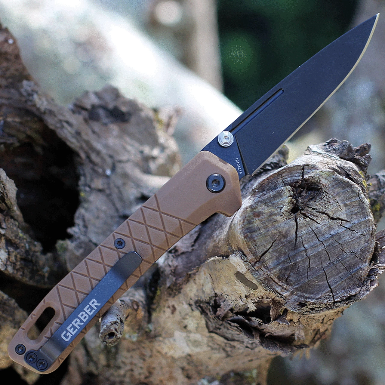 Gerber Zilch Folding Knife (30-001880) – 3.1″ Black Stainless Steel Drop Point Blade, Coyote Brown GRN Handle