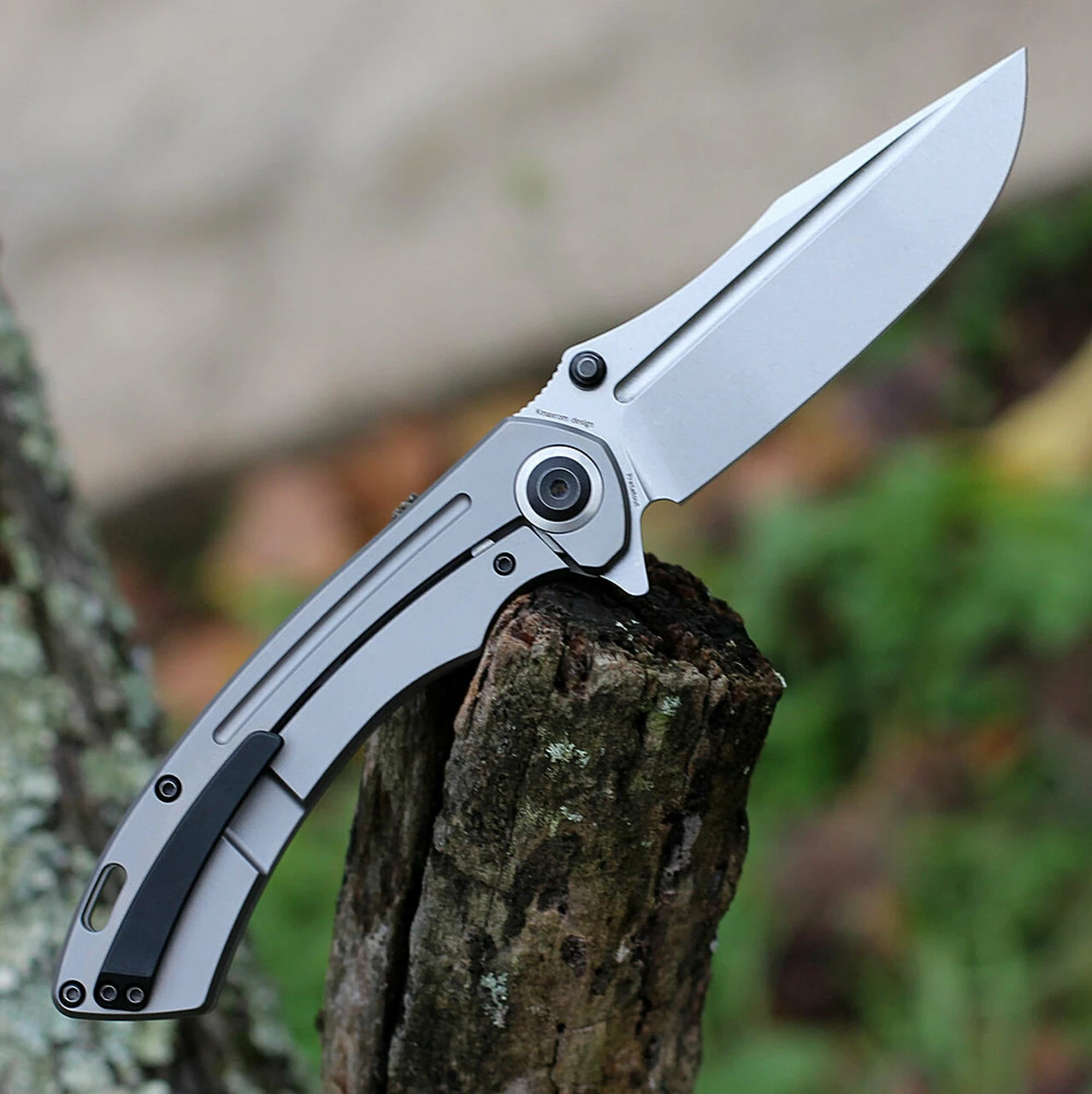 Kansept Pretatout folding knife – S35VN steel blade with gray titanium handle. 3.6 inch drop point blade is sharp for all your daily chores.