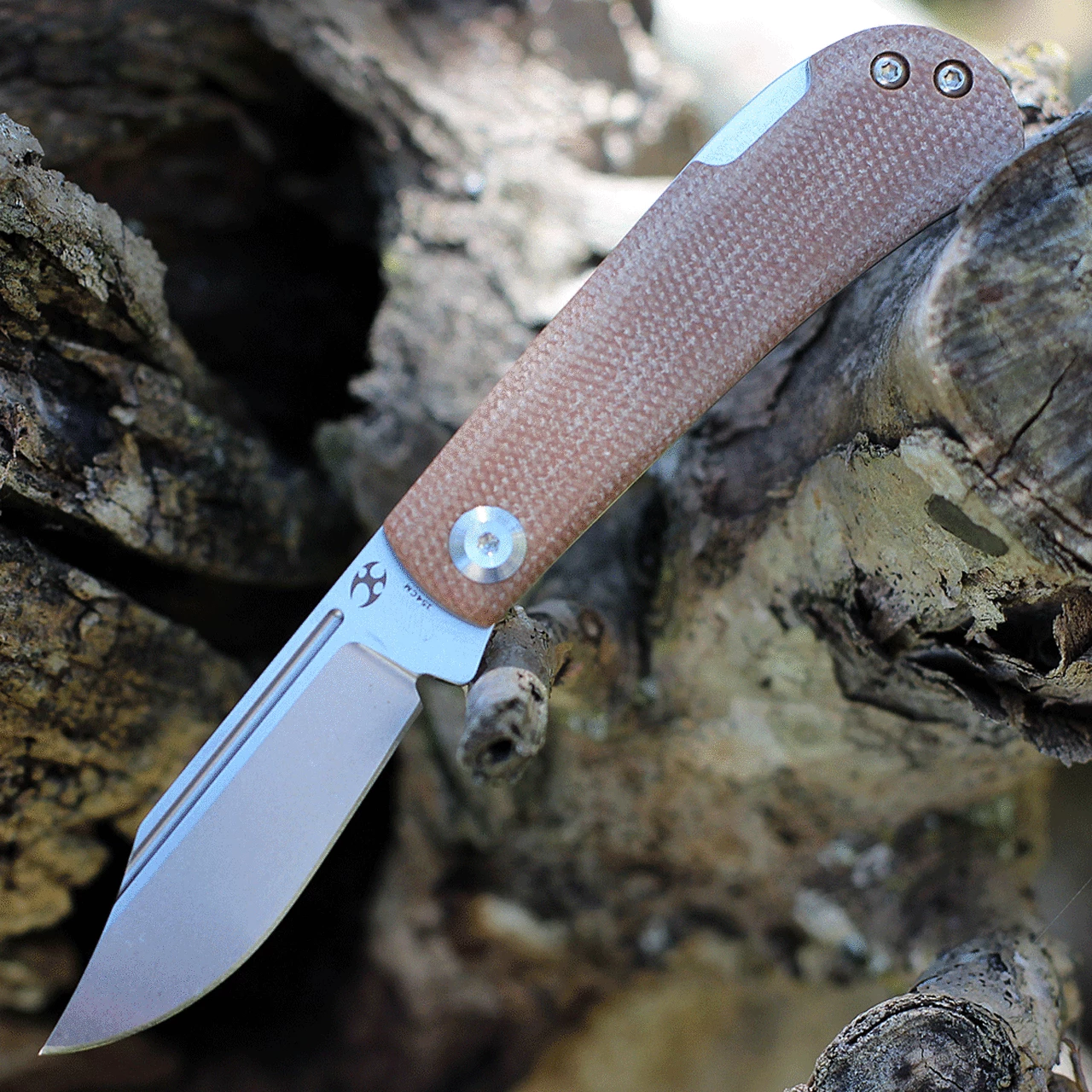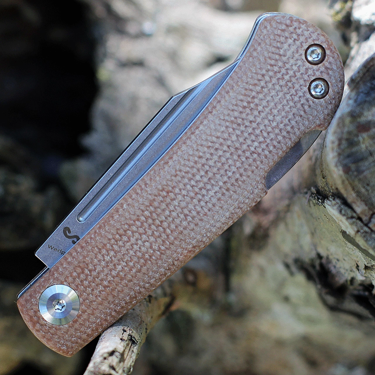 Kansept Wedge Back Lock T2026B3, 2.45″ 154CM Stonewashed Plain Blade, Brown Micarta Handle