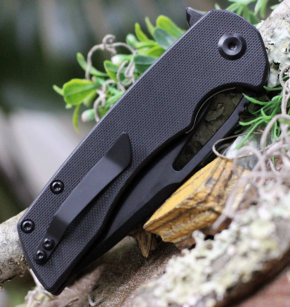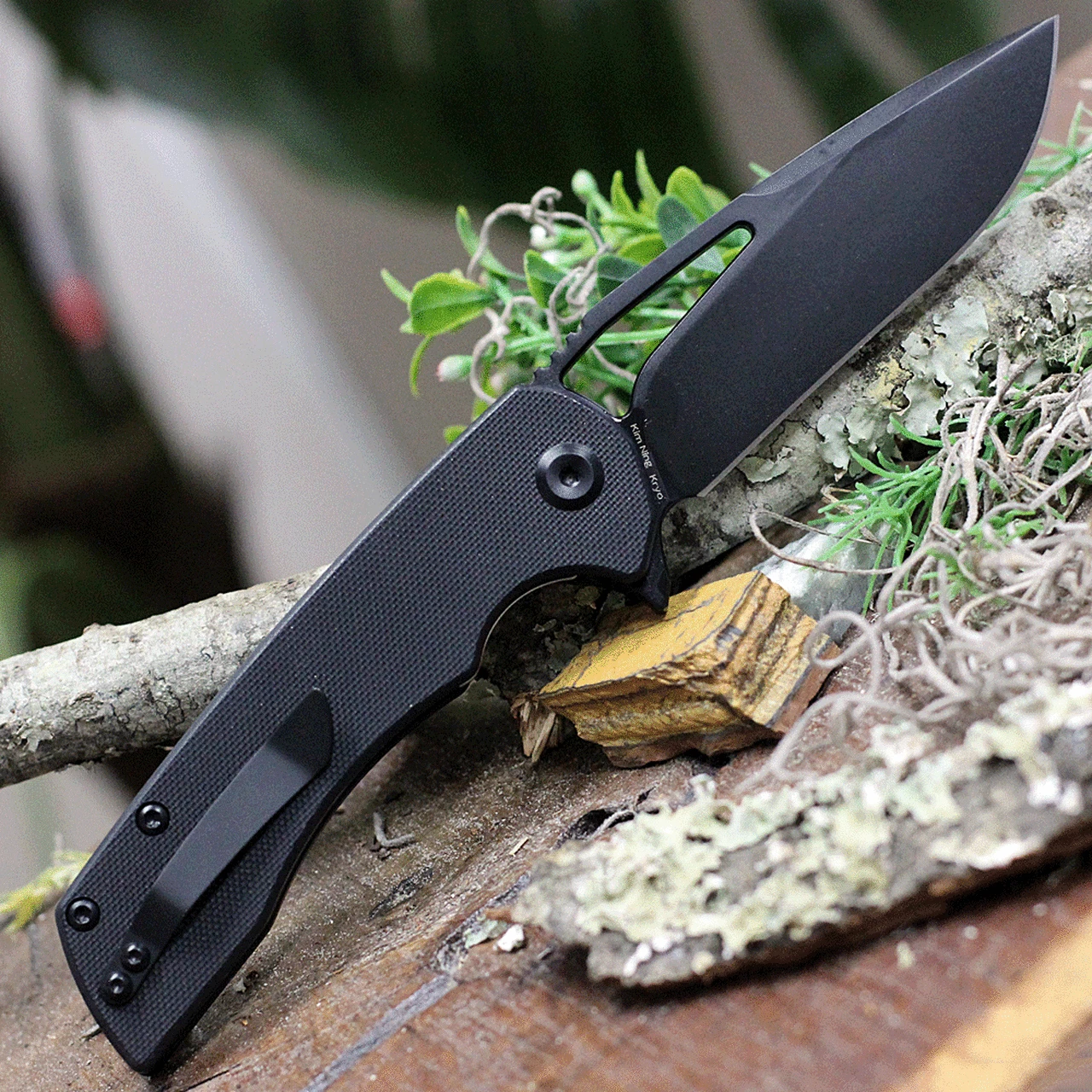 Kryo T1001 is a budget-friendly product line newly released by Kansept. The Kansept T1001A2 is built with a black coating D2 drop point blade and black G10 handle.The D2 blade provides a reliable edge that delivers solid cutting performance in outdoor and urban environments alike. The Ball Bearing system provides smooth opening and the liner lock firmly secures the blade in the open position.