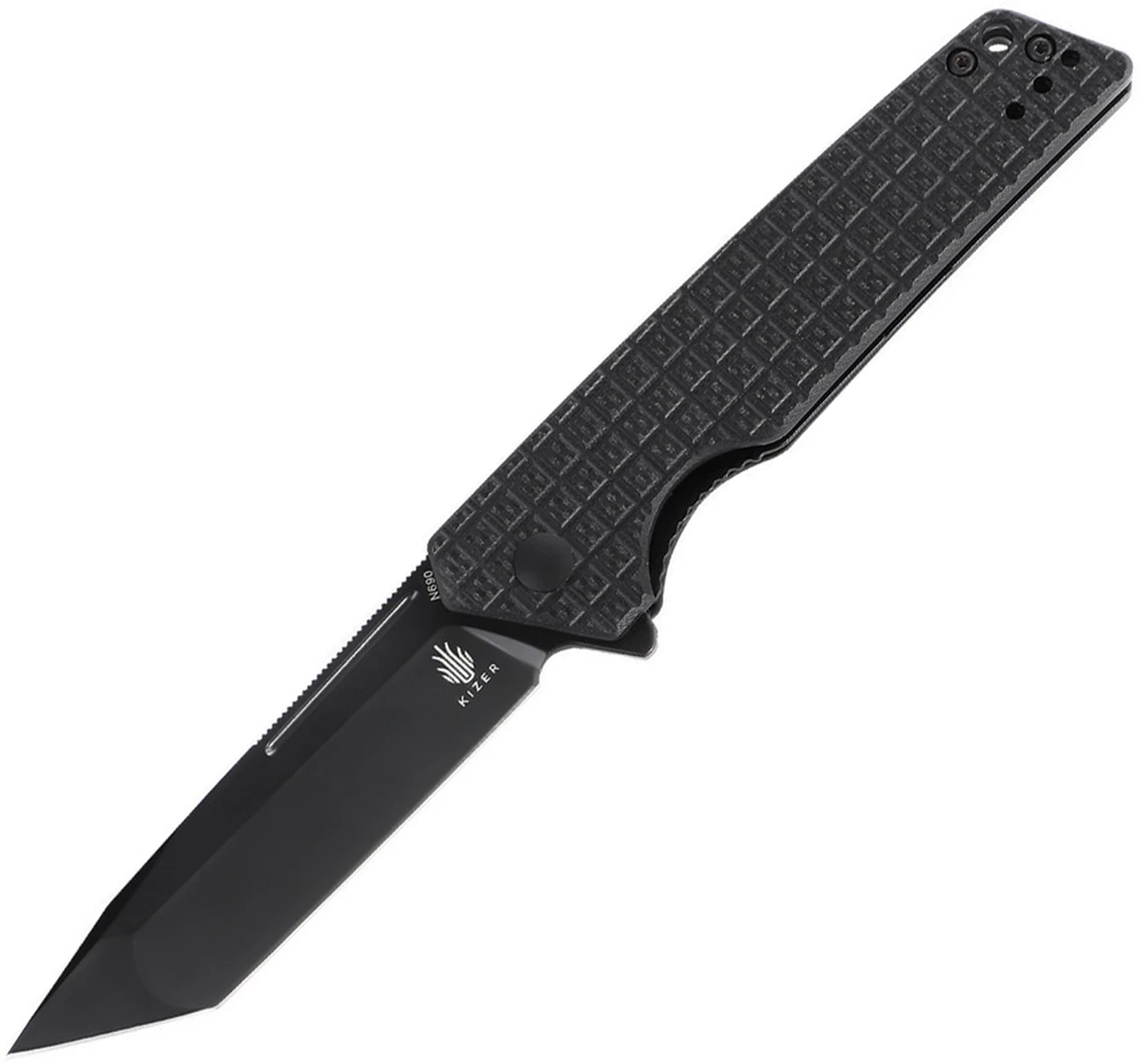 Kizer Cutlery Lan K4577N1, 3.37″ N690 Black Plain Blade, Black G-10 Handles