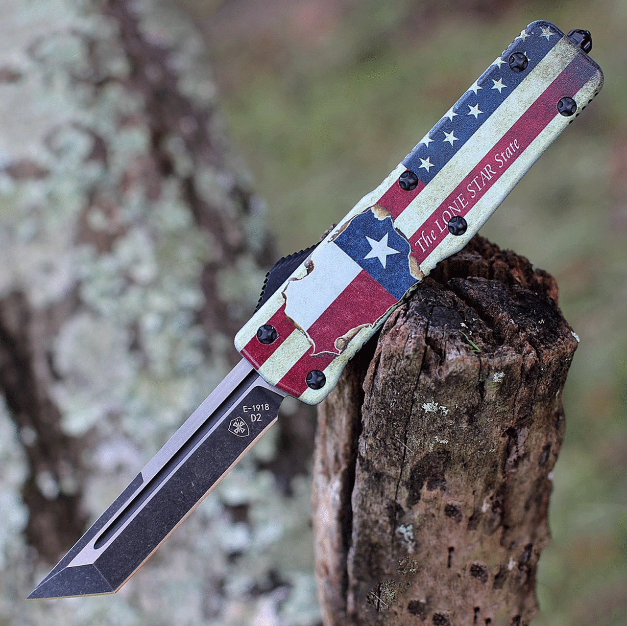 Templar Knife Premium Lightweight Series – Small OTF Automatic (SA-TX-22-1) – 3″ Powder D2 Black SW Tanto, Aluminum Texan “The Lone Star State” Handle
