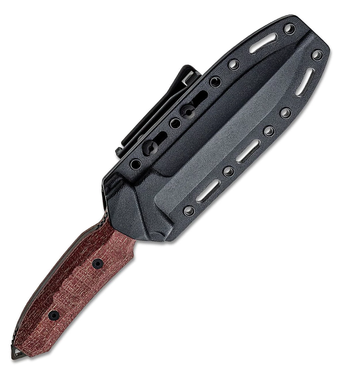Viper Knives Fearless Fixed Blade 4020CR, 6.0″ Sleipner Black PVD Coated Single Edge Dagger, Red Canvas Burlap Micarta Handles, Kydex Sheath