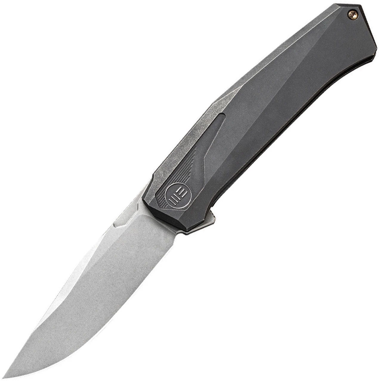 WE Knife Co. Gava, 2006B, 3.25″ CPM-20CV Bead Blast Stonewash Clip Point Blade, Black Titanium Handle