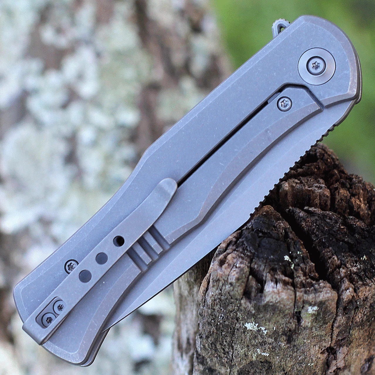 WE Knife Co. Primoris Folding Knife (WE20047A-1) – 3.47″ CPM 20CV Gray Stonewashed Drop Point Blade, Gray Titanium Handle