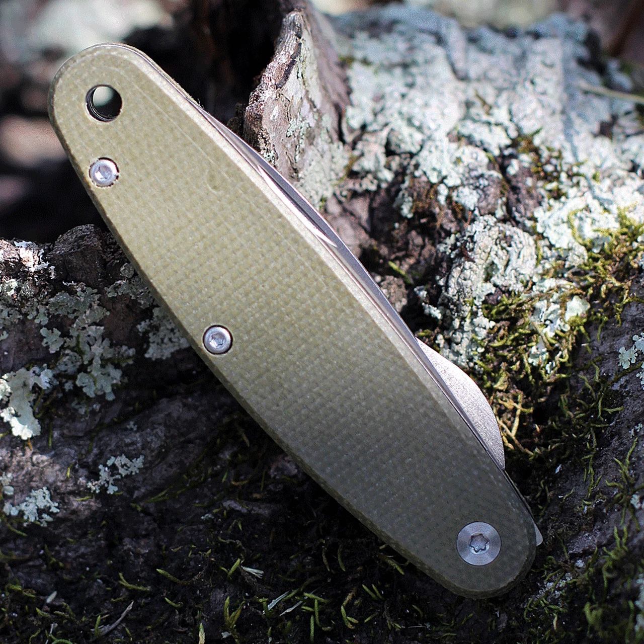 BRK Churp by ESEE – Liner Lock Folding Knife – 2.7″ D2 Satin Drop Point Plain Blade, Olive Green Micarta Handle