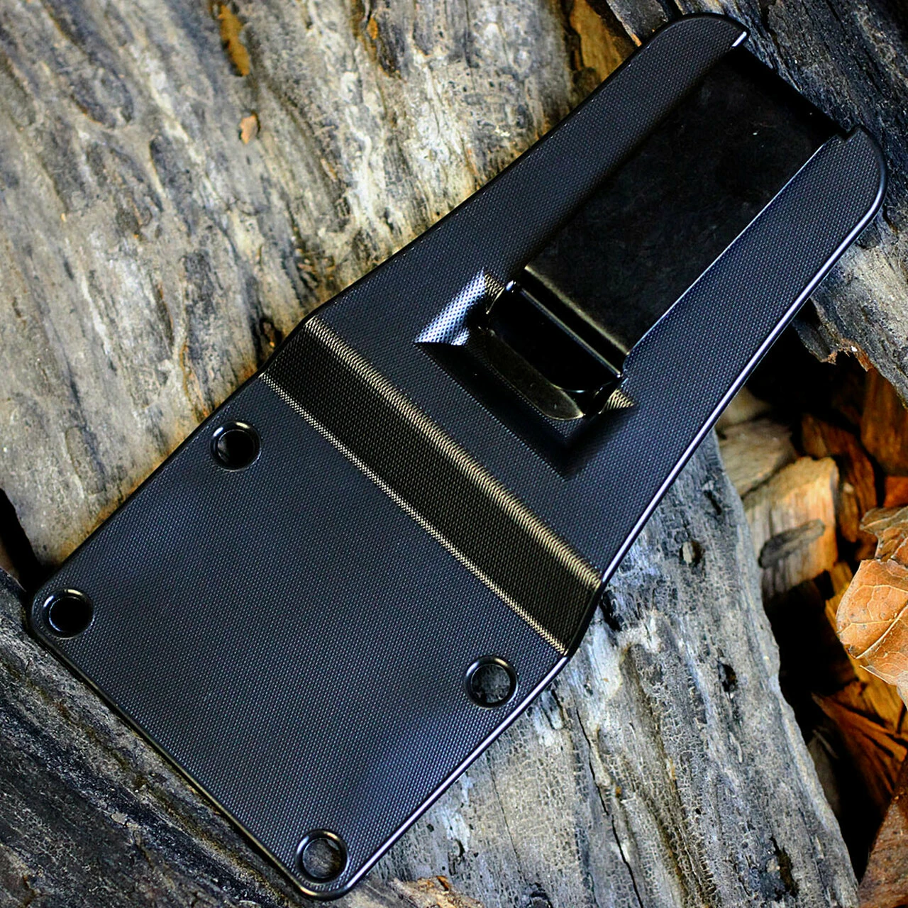 The ESEE-5 was designed by military SERE instructors as a hard-use downed pilot’s survival knife. Except for knife only models, the ESEE-5 comes standard with a Kydex sheath.