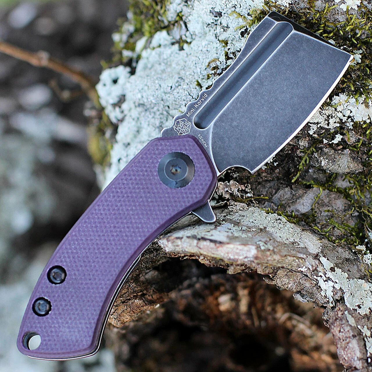 Kansept Mini Korvid Folder (T3030A3) – 1.45″ 154CM Black Stonewashed Cleaver Blade, Purple G-10 Handle