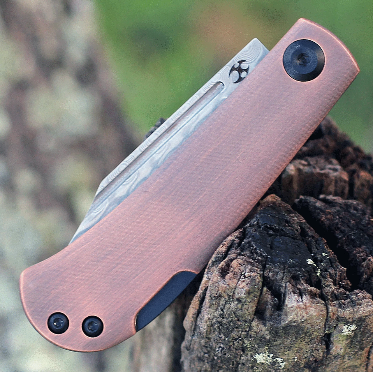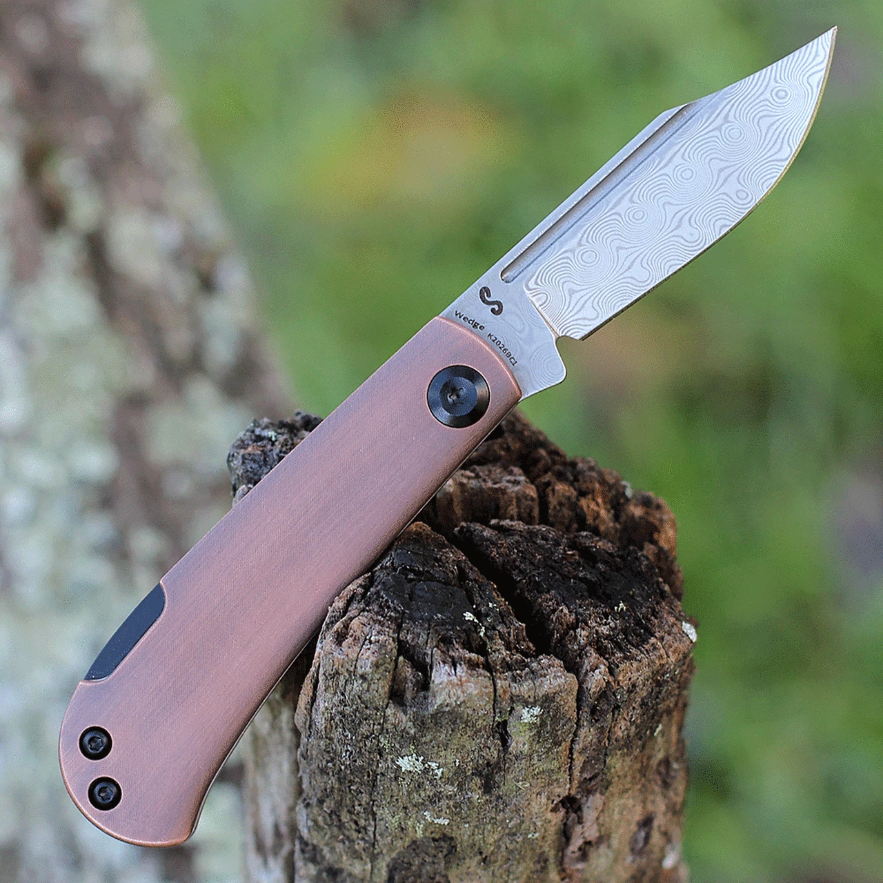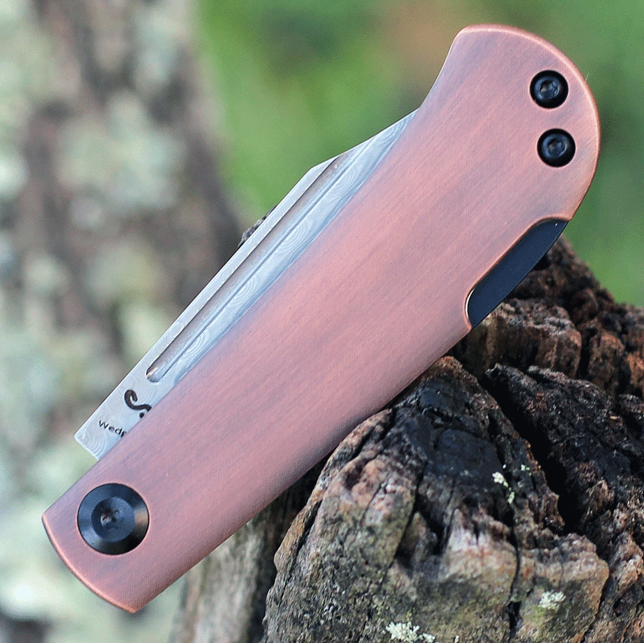 Kansept Knives Wedge Lock Back – (K2026BC1) – 2.9″ Damascus Point Blade, Red Copper Handle