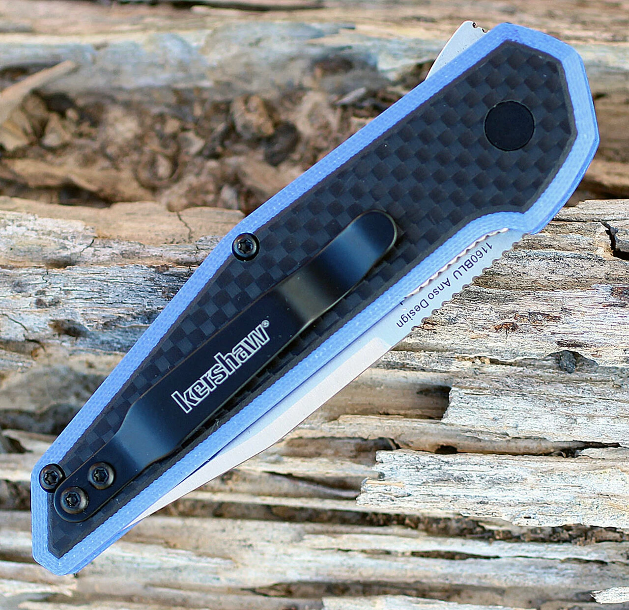 Kershaw and Danish custom knife and toolmaker, Jens Anso, have teamed up to create a handsome knife just right for the knife user who prefers a contemporary look. This slim, sleek design weighs in at a “Fraxion” of the weight of other comparable knives—under 2 ounces.