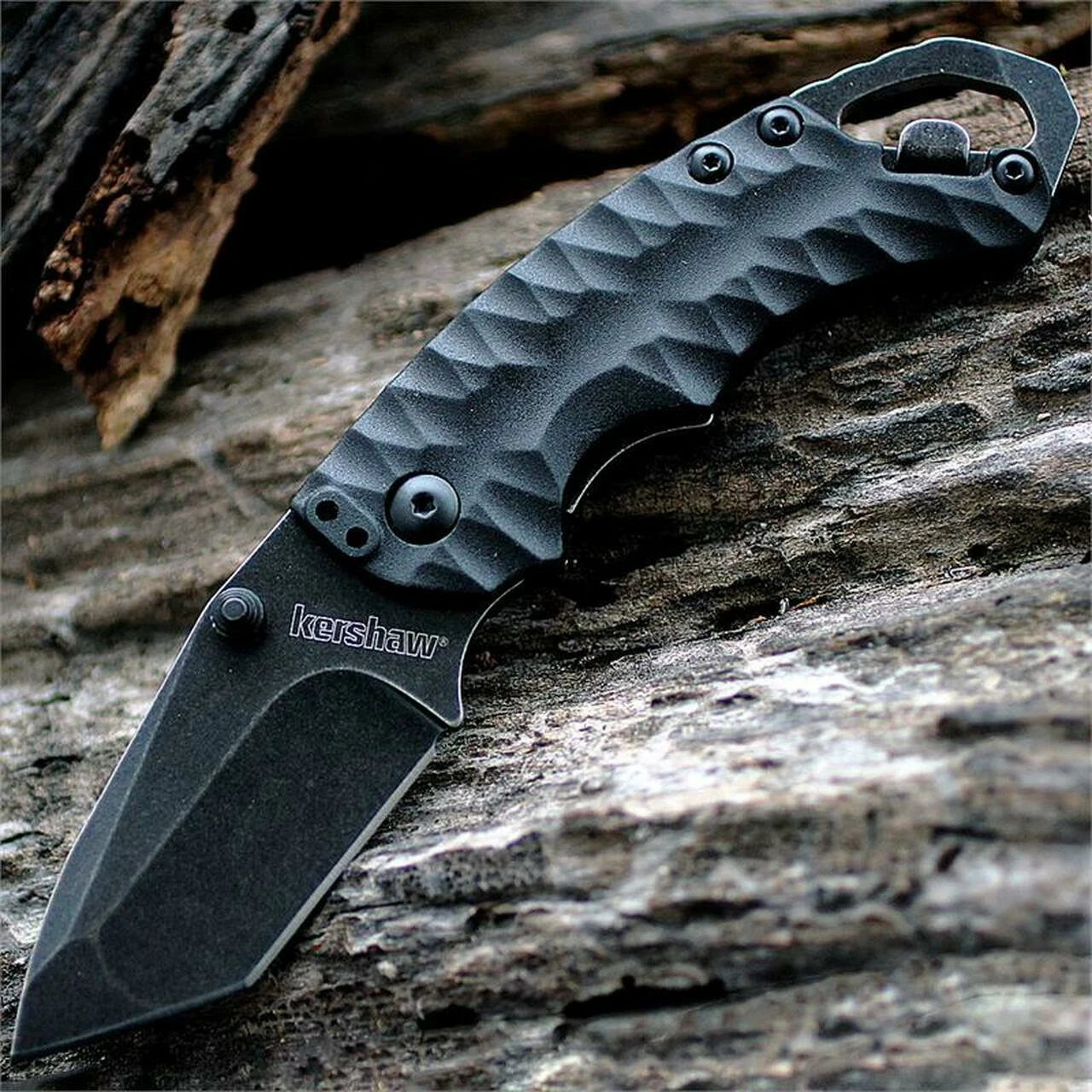 The Shuffle II has a different look but the same multi-functional flexibility and value pricing that made the original Kershaw shuffle such a hit. The new Shuffle offers a bigger tanto blade and longer handle. The strongly textured handle and Blackwashed blade, gives the Shuffle II a brawnier look and feel. The 2.25 inch blade is made of 8Cr13MoV, a quality stainless steel known for its ability to hold an edge, strength, and hardness. The heavily textured handle enhances grip, while still being comfortable to hold and use. A liner lock secures the Shuffle II’s blade open in use, but closes easily when its tasks are done. It also features the strong finger contours, handy bottle opener, screwdriver tip, and lanyard attachment that help define the Shuffle.
