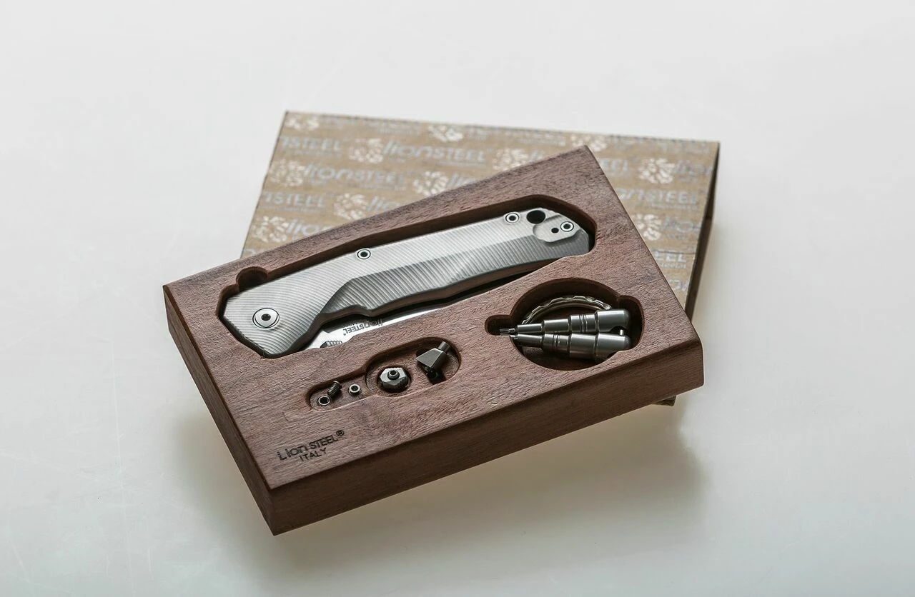 T.R.E. is supplied in an elegant wooden box which contains the opening pin and the flipper as well, along with the Torx T6 and T8 keys to be employed for the placement and removal of the accessories.