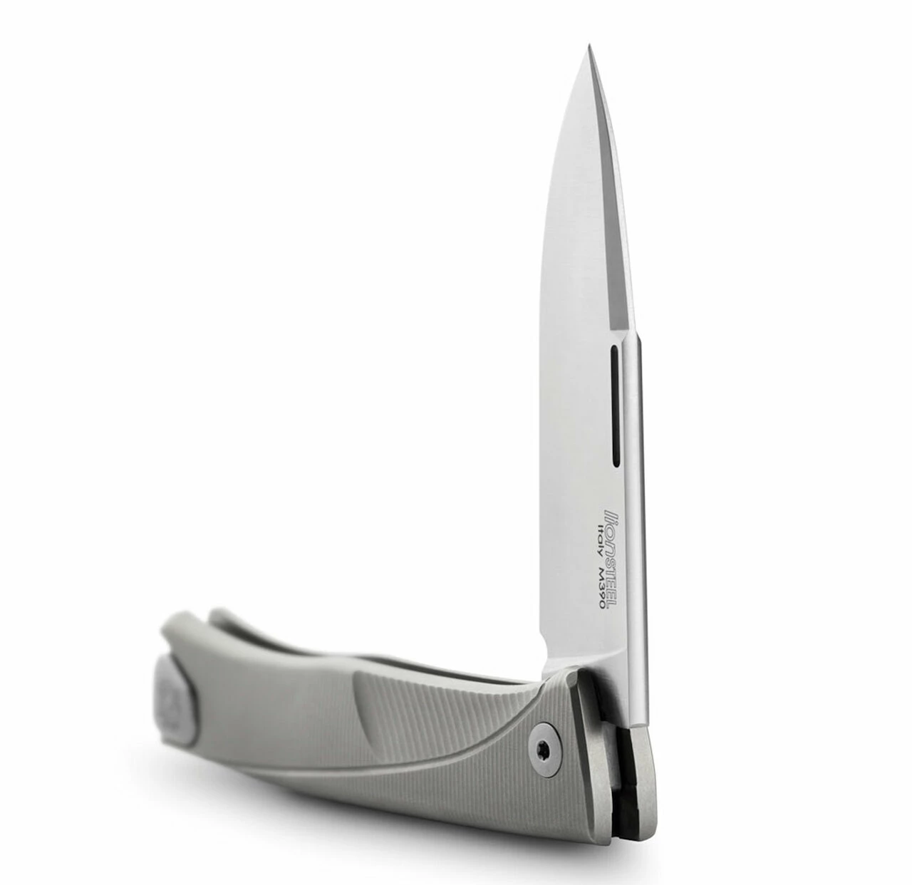 LionSteel Thrill Slip Joint (TL-GY) – 3.15″ M390 Satin Drop Point Blade, Gray Titanium Integral Handleย