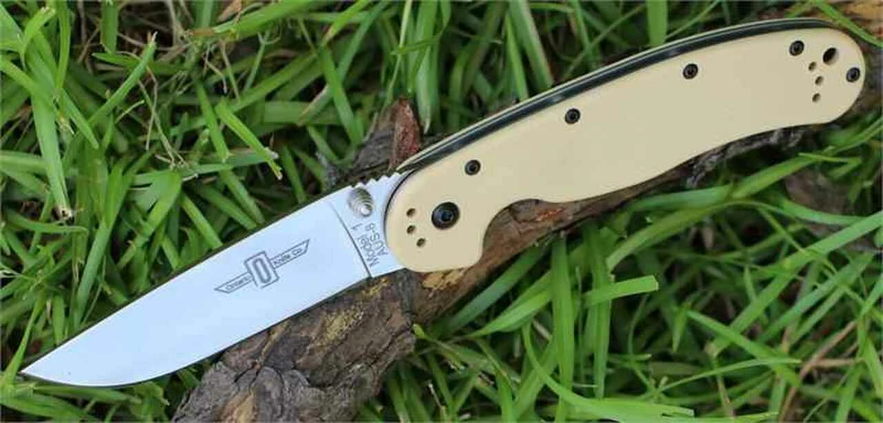 Ontario Rat Folder, Satin Blade, Desert Tan Handle, Plain Edge