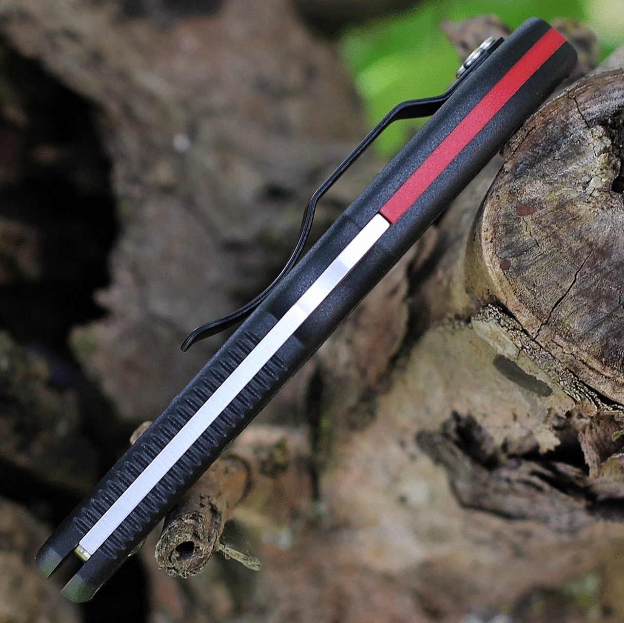 This color theme symbolizes the “thin red line” first responders represent between the normalcy of our daily world and the chaos of life-threatening emergencies. The VG-10 stainless steel blade combines the low-friction edge geometry of a full-flat grind.