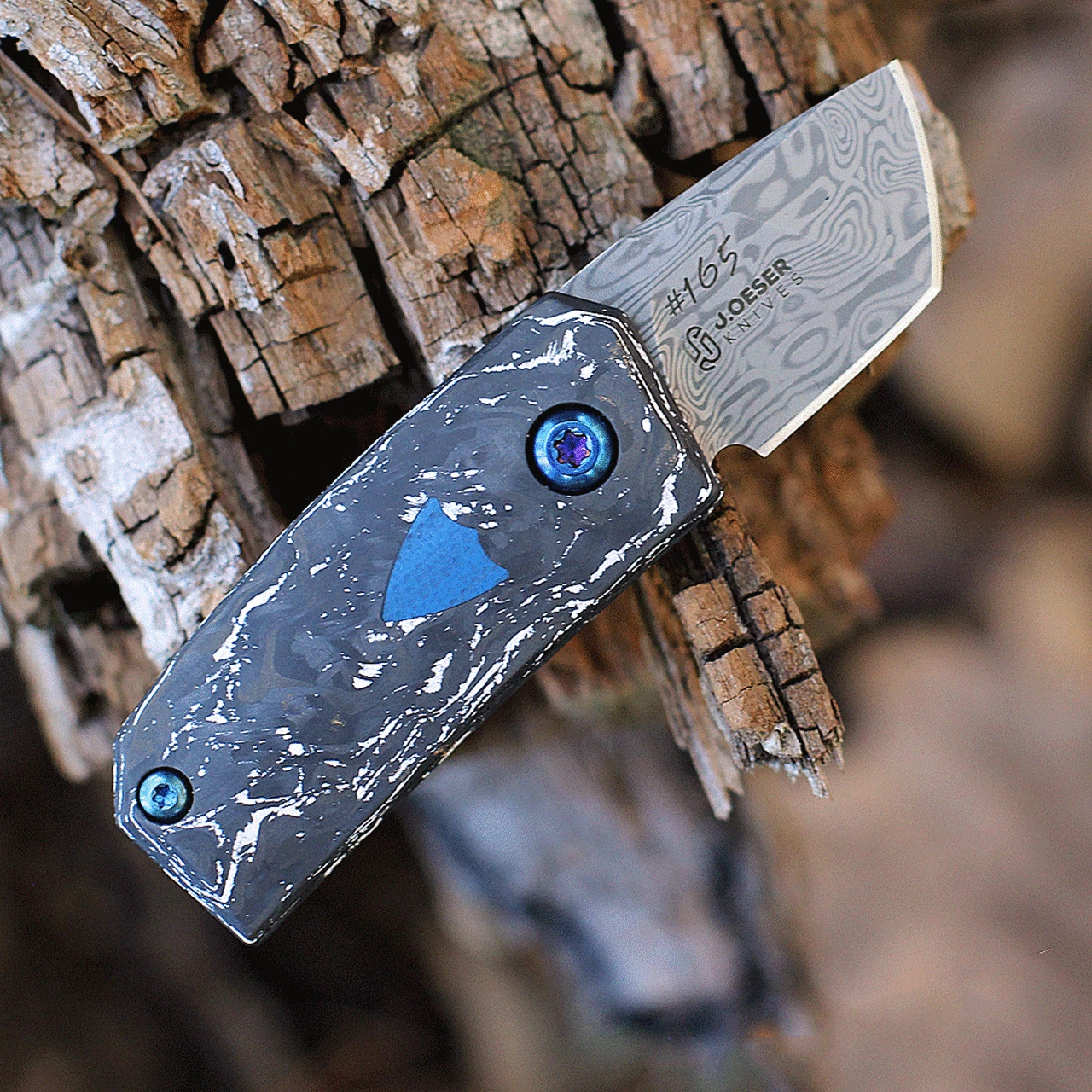 | Overall Length | 3.27″ | ย | Handle Material | White and Black Marbled Carbon Fiber w/Blue G10 Shield Inlay |