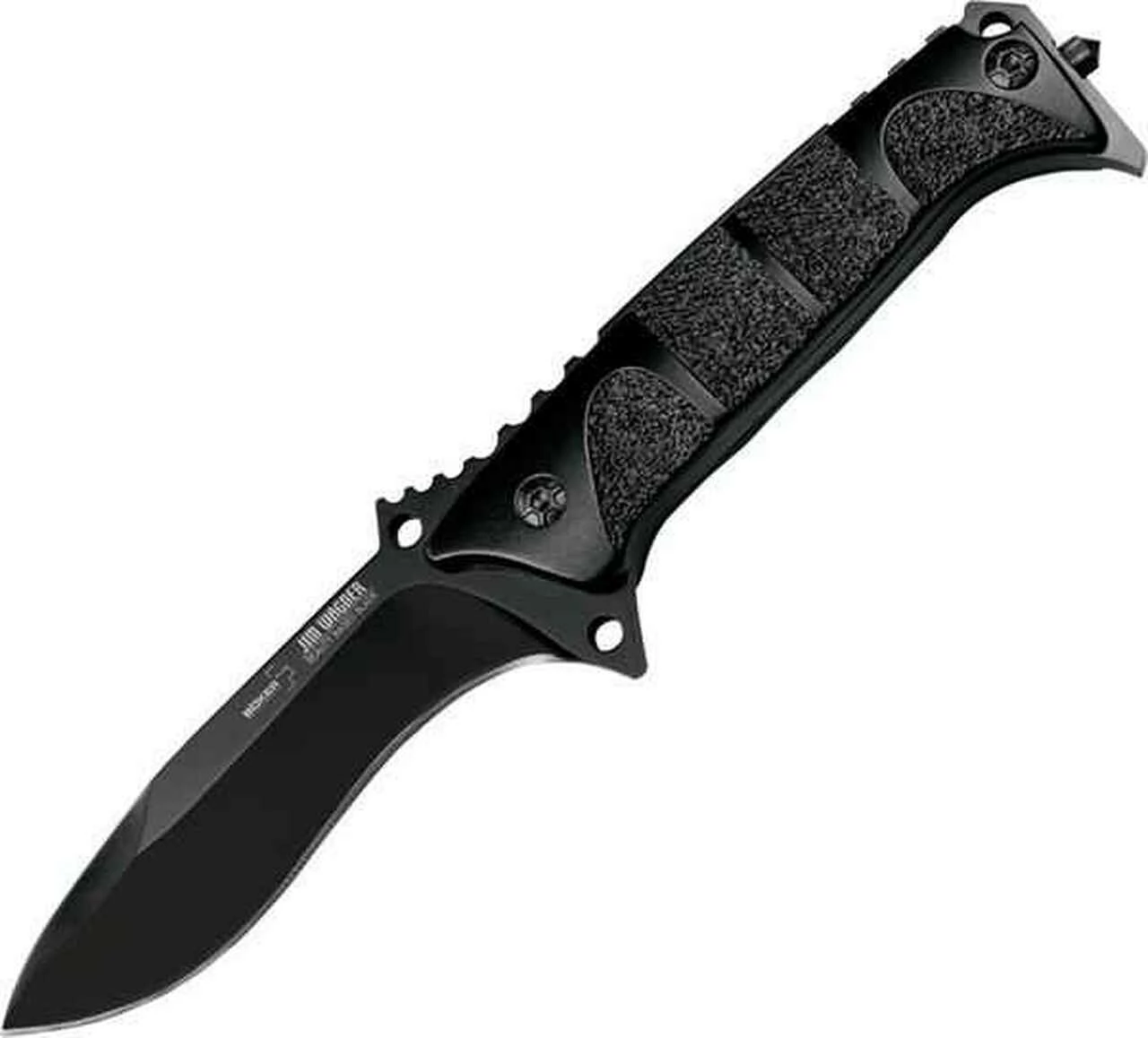 The overwhelming success of our RBB Series from Jim Wagner continues. Even the larger, full sized version is very popular, but there have been many requests for a more EDC-friendly version, which we present to you here. This new RBB fixed blade features a recurved blade made of 440C stainless steel for powerful and effective cutting, while the screwed on aluminum handle provides a secure grip. The handling is supported by a thumb ramp and a deep index finger choil. The tang has holes, underneath the handles, for reduced weight without weakening the construction. The interchangeable glass breaker tip offers added functionality. Includes a molded black Kydex sheath and belt adapter.