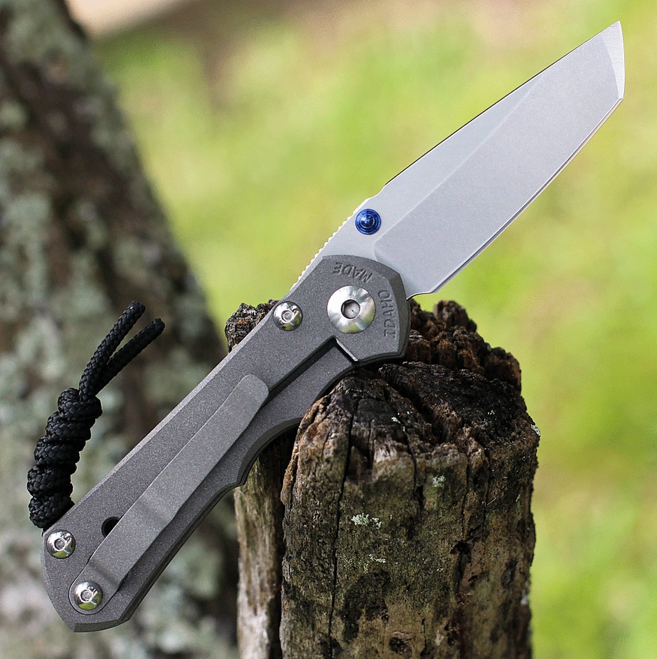 Chris Reeve Knives Small Inkosi Tanto, 2.80″ CPM S45VN Stonewashed Plain Edge, Sandblasted Titanium Handle