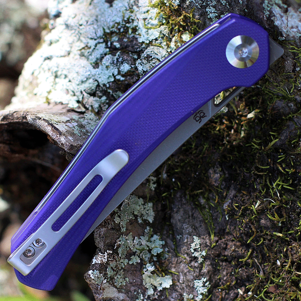 CIVIVI Lazar Front Flipper Knife (C20013-2) 3.31″ 10Cr15CoMoV Gray Stonewashed Trailing Point Blade, Purple G-10 Handle