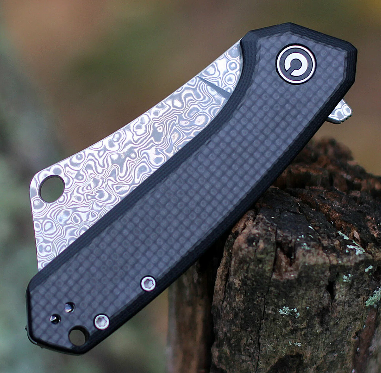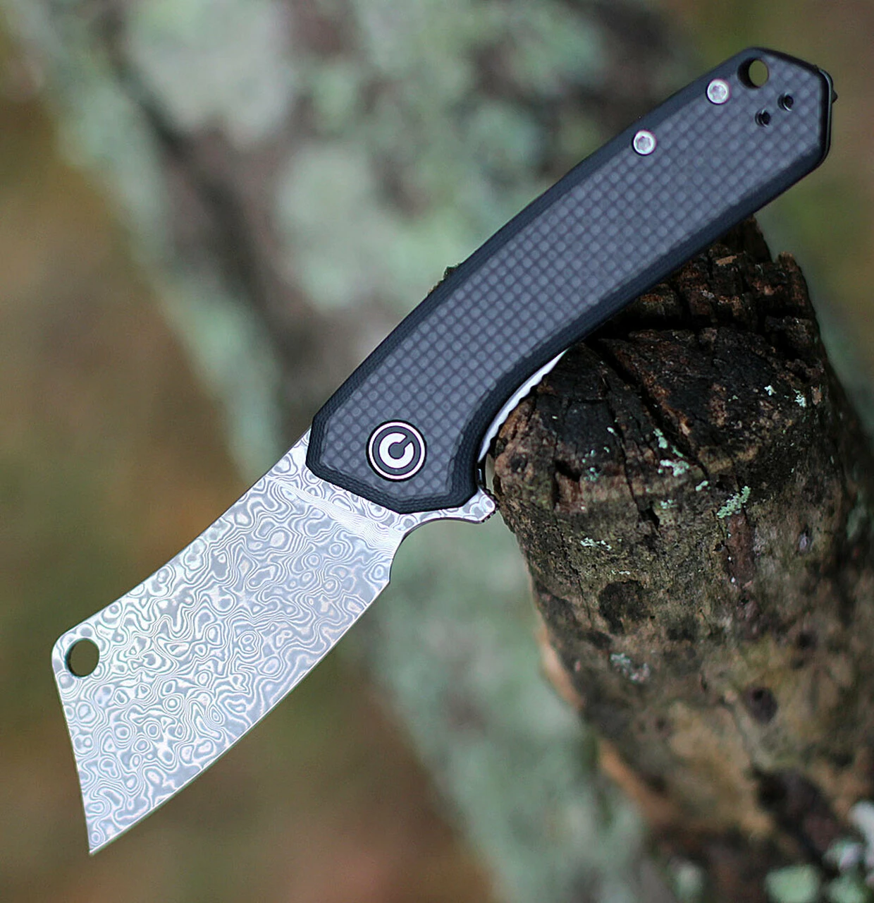CIVIVI Mini Mastodon C2011DS-1, 3″ Damascus Cleaver Blade, Black G-10 Handles w/Twill Carbon Fiber Overlay