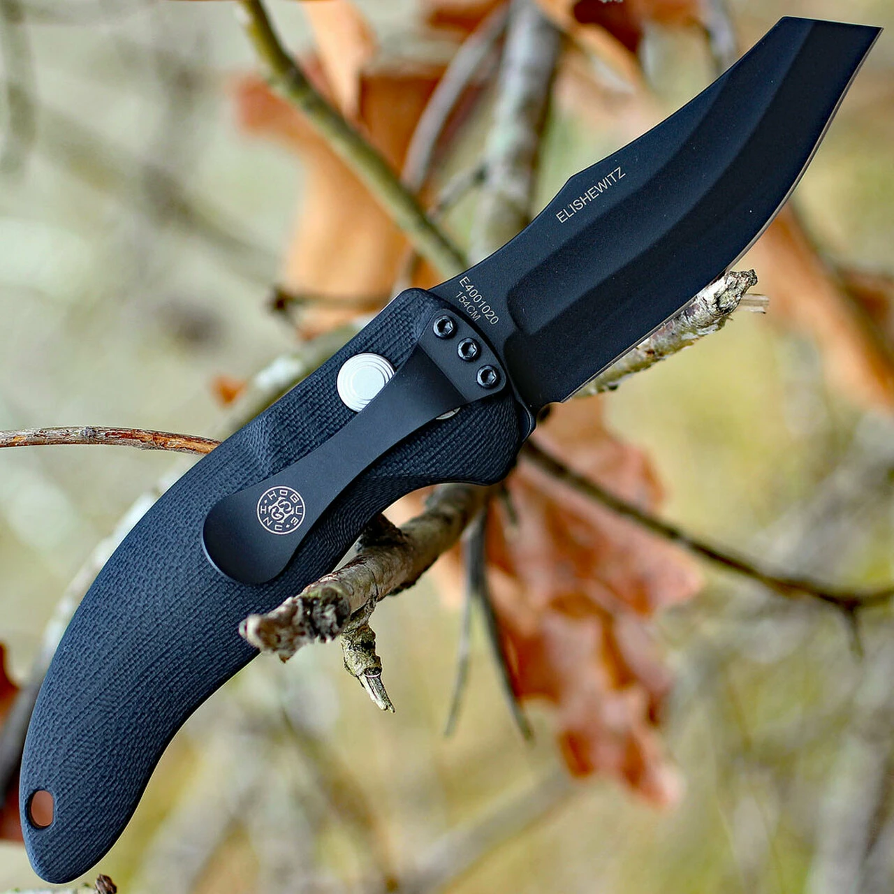 The EX-A04 has two new models with textured, 6061-T6 Type III hard anodize aircraft aluminum handles. These versions have tumble finished blades, a first for our double hollow grinds. Also exclusive to the new aluminum models is a tip up clip option. G-Mascus G10 handles have an updated surfacing with our Piranha Grip texture.