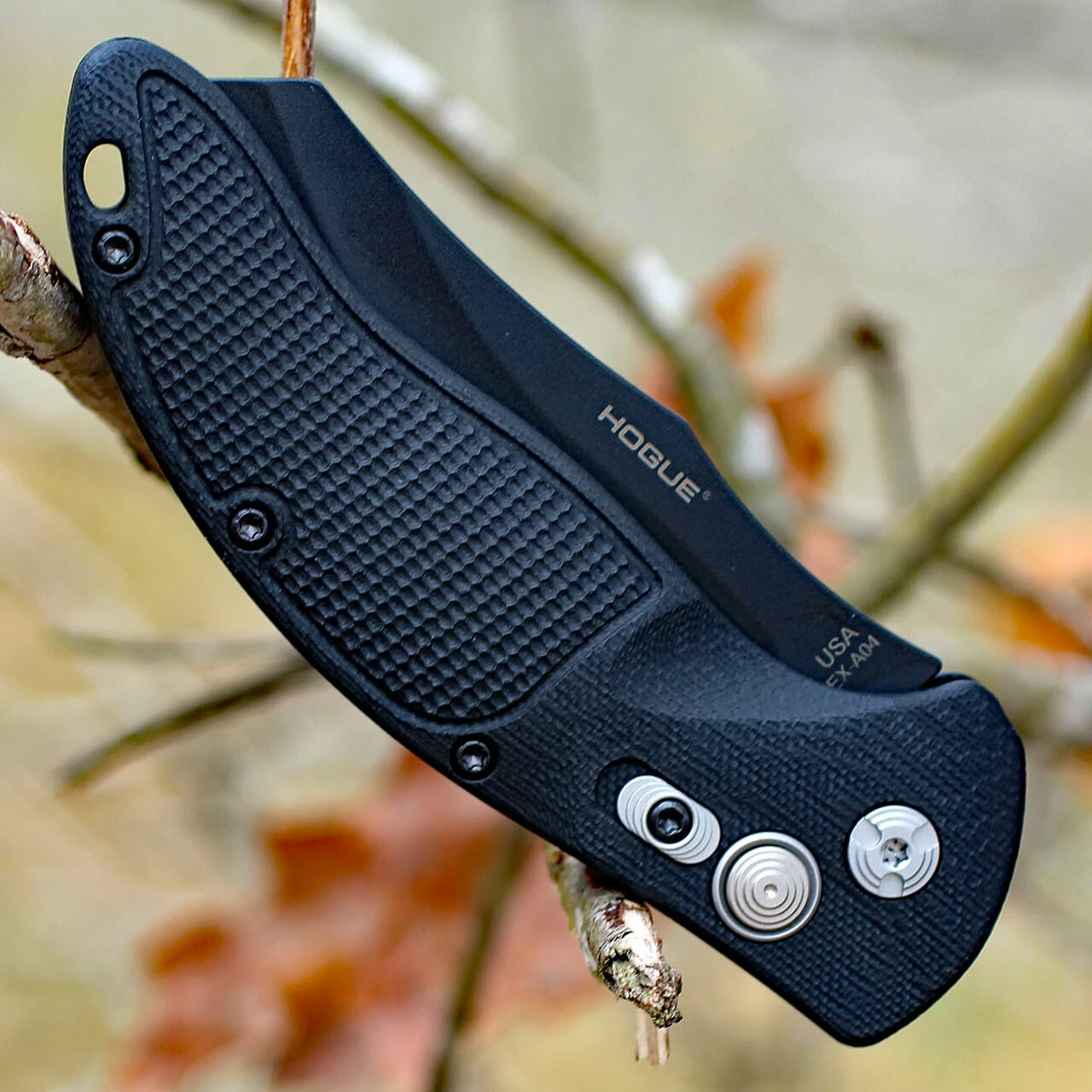Hogue 34420 EX-A04, 3.5″ 154CM Wharncliffe Plain Blade, Black G-10 Handle