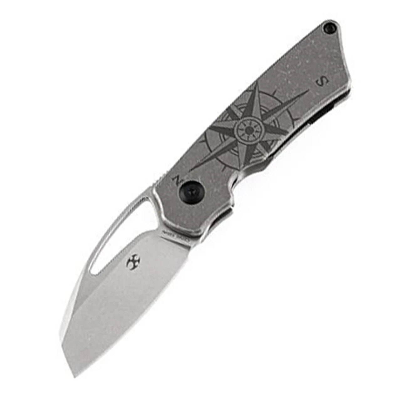 Kansept Knives Goblin Folding Knife (K2016A4) – 2.18″ CPM-S35VN Stonewashed Wharncliffe Blade, Bronzed Titanium Handle with Compass Print