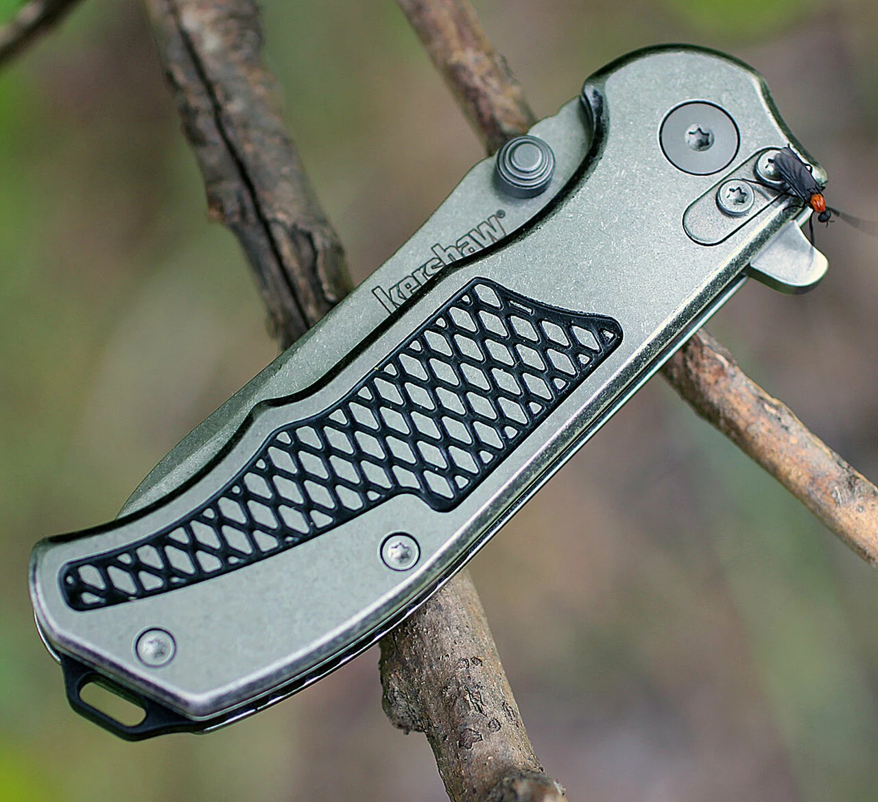 The blade is 8Cr13MoV stainless steel that takes and holds a sharp edge. Kershaw’s stonewashed finish looks great and hides use scratches—another very practical touch. SpeedSafe assisted opening make it easy to access the blade one-handed. Just pull back on the flipper.