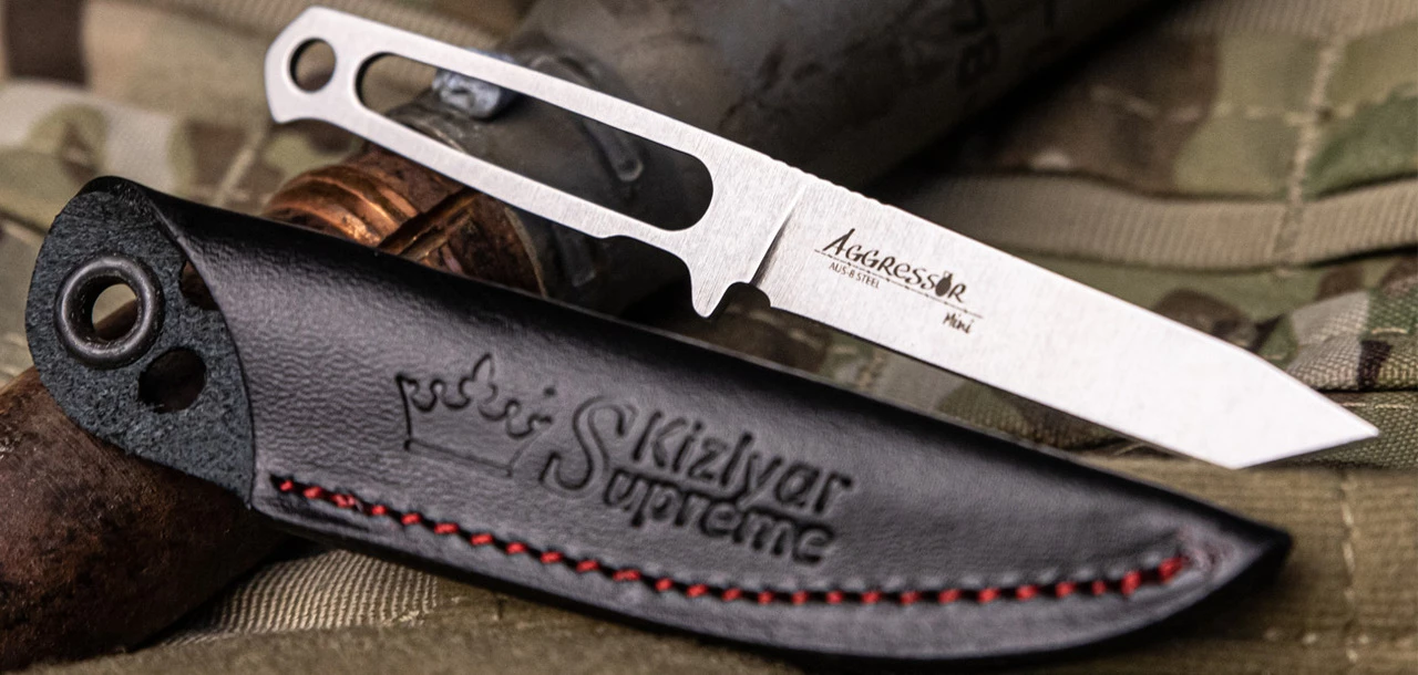 This small fixed blade knife by Kizlyar Supreme is a great everyday carry but can handle heavy duty chores if needed.Versatile in their carry capacity you can be subtle or bold as well as practical on where you sheath your Mini Aggressor. The 2โ blade sufficiently cuts and with its open frame design is extremely light.ย