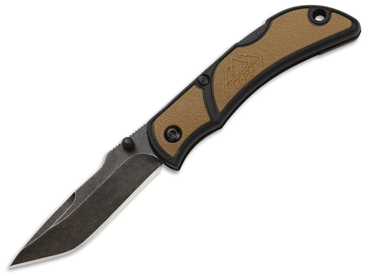 Outdoor Edge Small Chasm CHC-25C, 2.5″ 8Cr13MoV Black Stonewash Plain Blade, Coyote Brown Zytel Handles