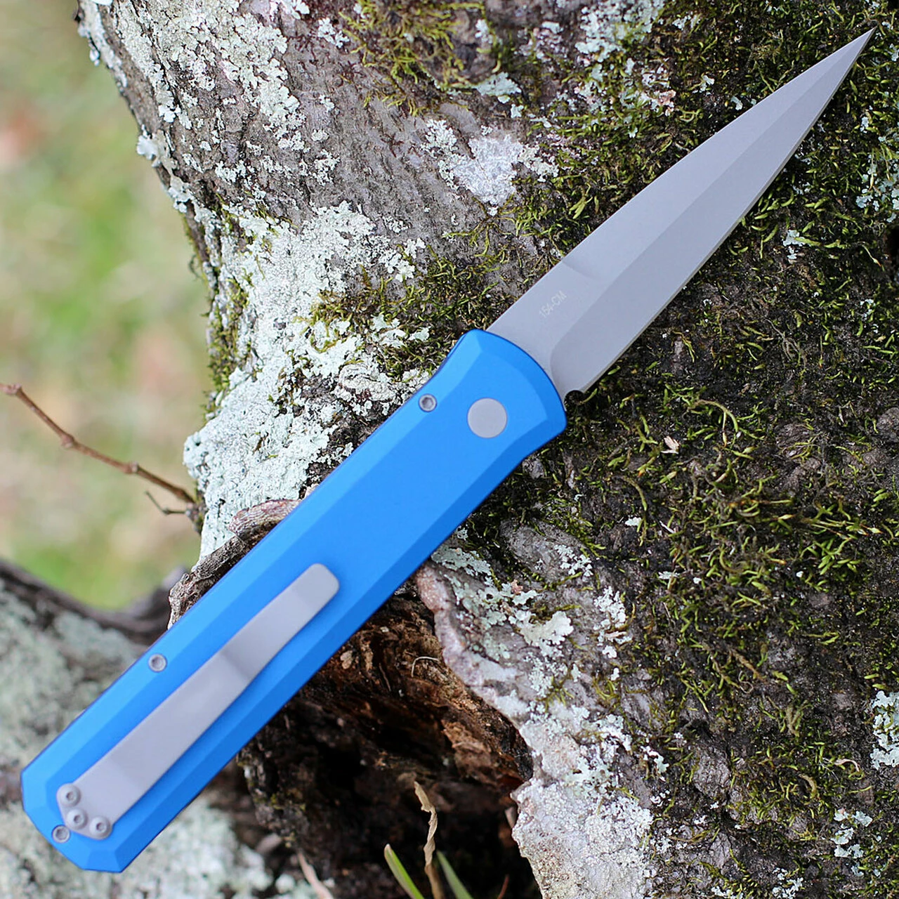 Pro-Tech Godfather Automatic (920-BLUE) – 4″ 154CM Blasted Spear Point Blade, Blue Aluminum Handle