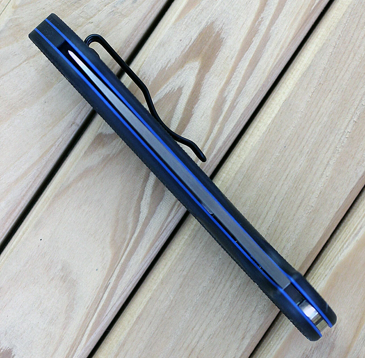 Its full-flat-ground blade is crafted from ultra-corrosion-resistant LC200N steel and supported by a stout back lock mechanism. To ensure a secure, non-slip grip in wet conditions, the blade is paired with a coarse-textured G-10 handle with a substantial integral guard. Both G-10 scales include a stylish blue accent layer and house a reversible deep-pocket wire clip that balances secure carry with quick access.