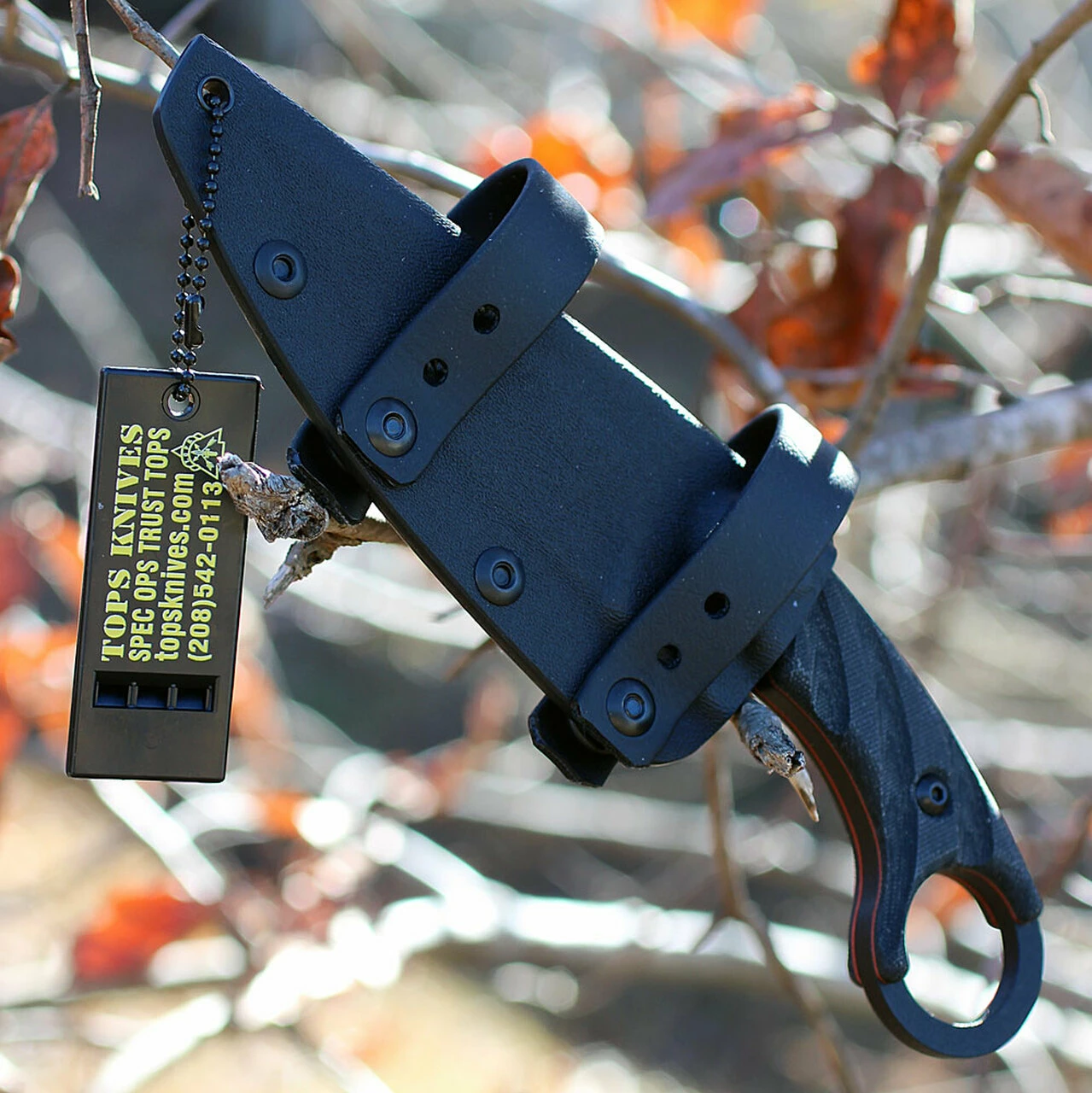 Having a martial arts background, Joshua Swanagon has done some training with the karambit and is a fan of ring style knives and their prowess in combative applications. However, also being an avid outdoorsman, he has found them to be less than ideal as field utility blades. So he set out to make a knife that could combine those disciplines and decided to call it the C.U.T. 4.0 (Combat Utility Tool). It is a combative, ring-knife with a utility style blade for field use. The curved handle and ring of a karambit provide superior comfort during combative use, and a traditional drop point blade profile is ideal in the field. The aggressive tip provides for maximum penetration during combat, allowing the C.U.T. 4.0 to penetrate body armor and heavy clothing much easier, while also being useful for drilling chores during fieldcraft tasks. The C.U.T. 4.0 was designed with professional personnel in mind, but will also make a great EDC for civilians and martial artists who like the diversity of a dual purpose knife.